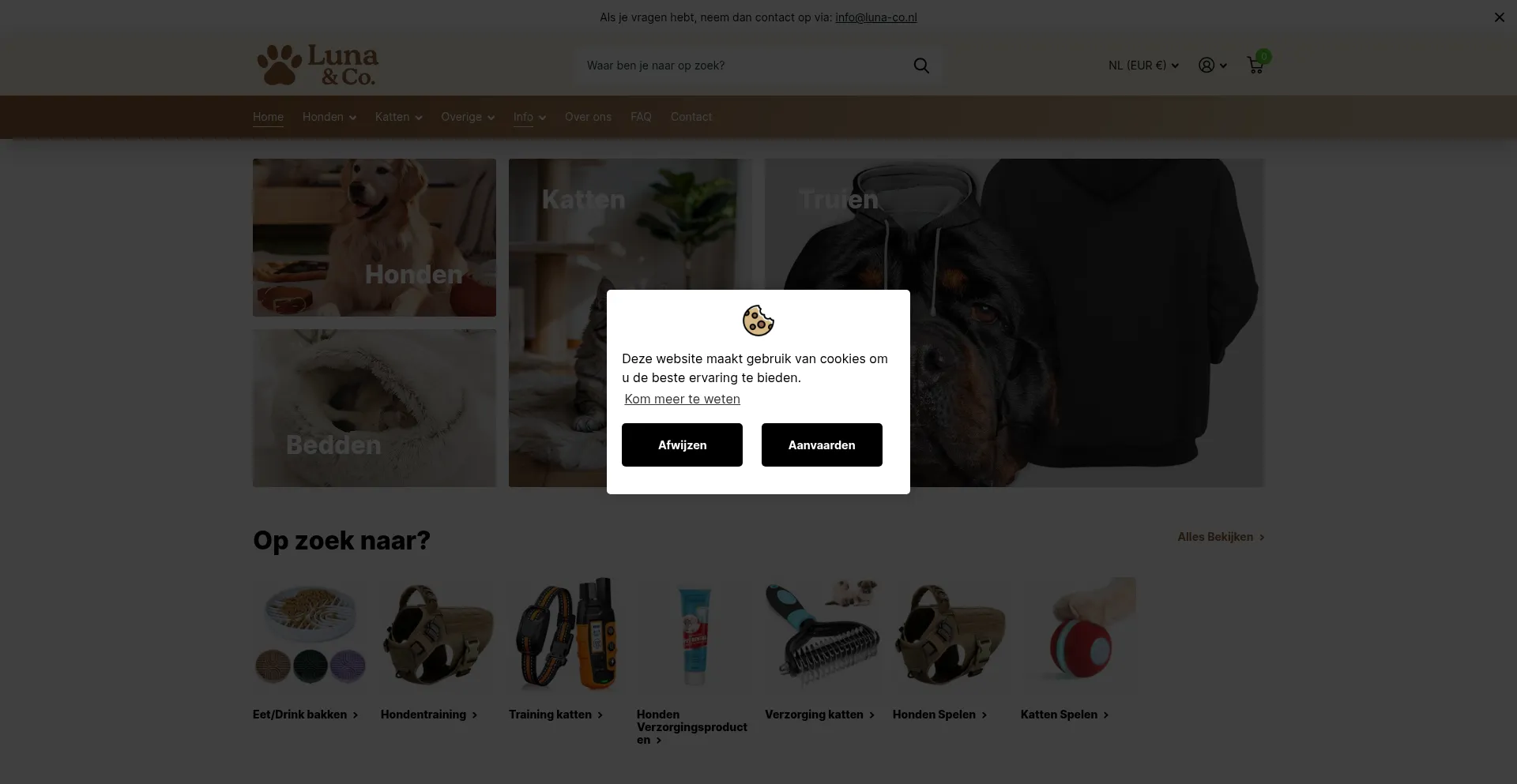 Analysis indicates that luna-co.nl operates as an e-commerce platform facilitating online transactions for goods or services. The website implements shopping cart functionality, payment processing systems, and product catalog features typical of commercial retail operations.