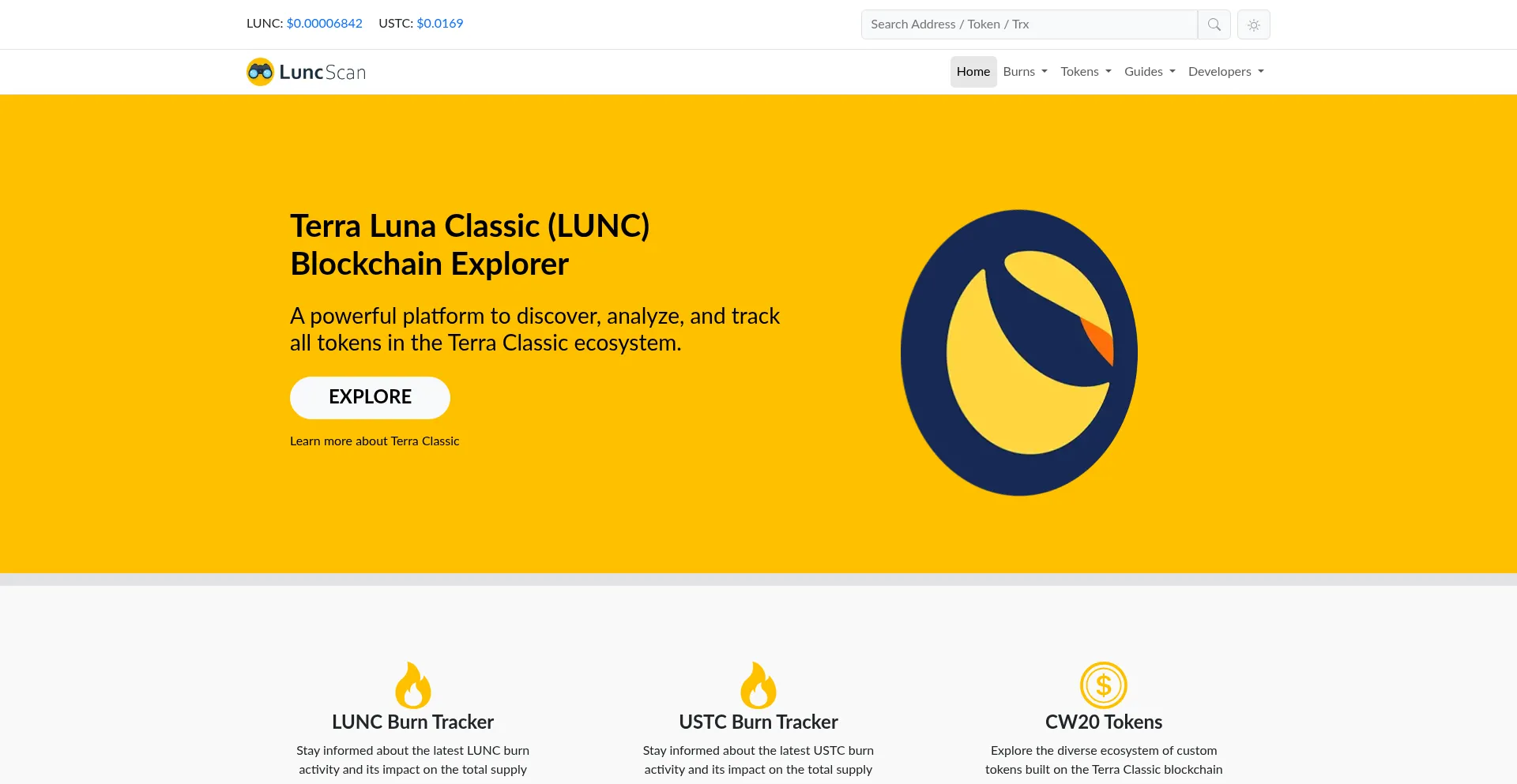 LuncScan offers comprehensive blockchain exploration, wallet tracking, explore top LUNC projects, and analyze on-chain data. Terra Classic blockchain explorer.