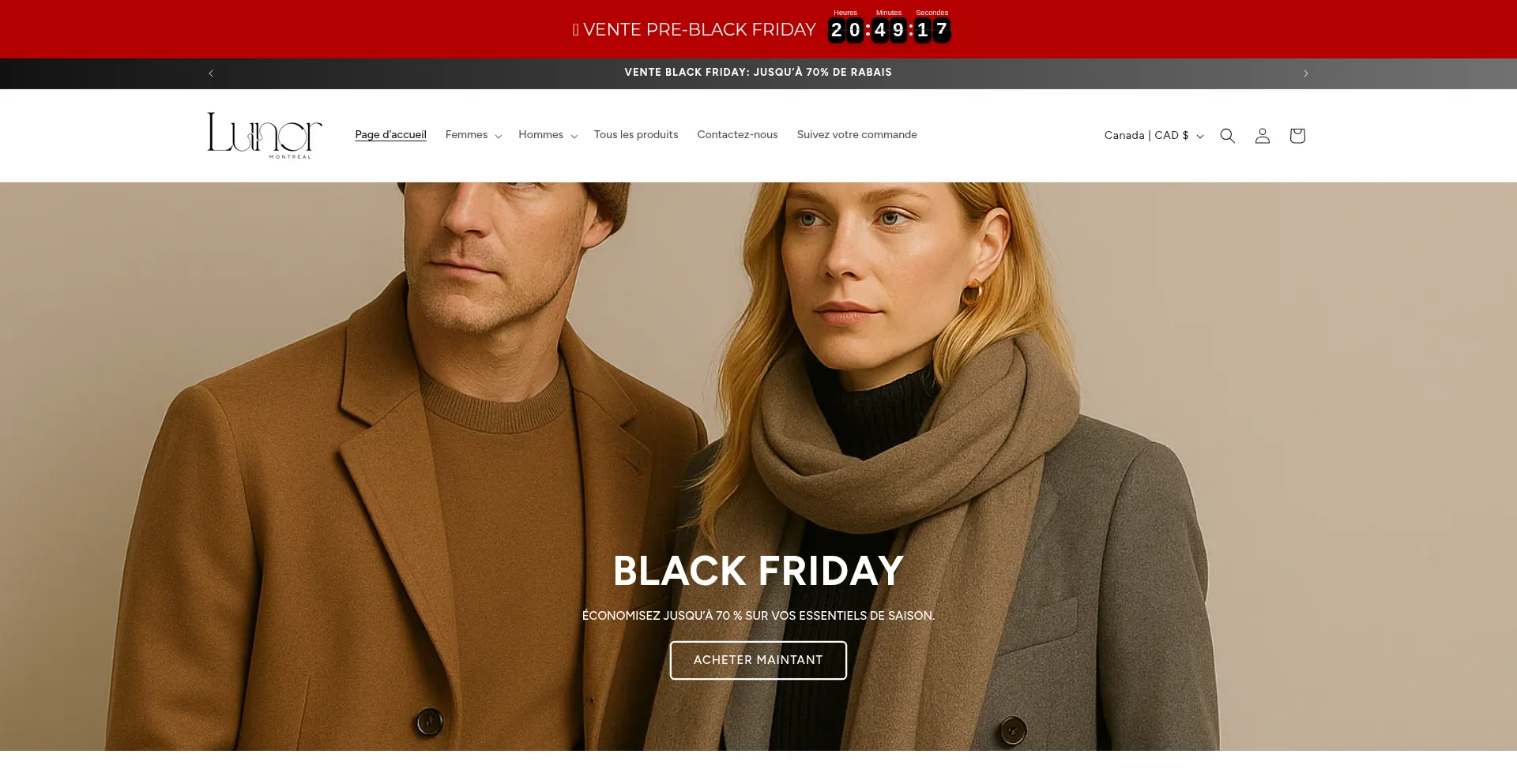 Analysis indicates that lunormontreal.com operates as an e-commerce platform facilitating online transactions for goods or services. The website implements shopping cart functionality, payment processing systems, and product catalog features typical of commercial retail operations.