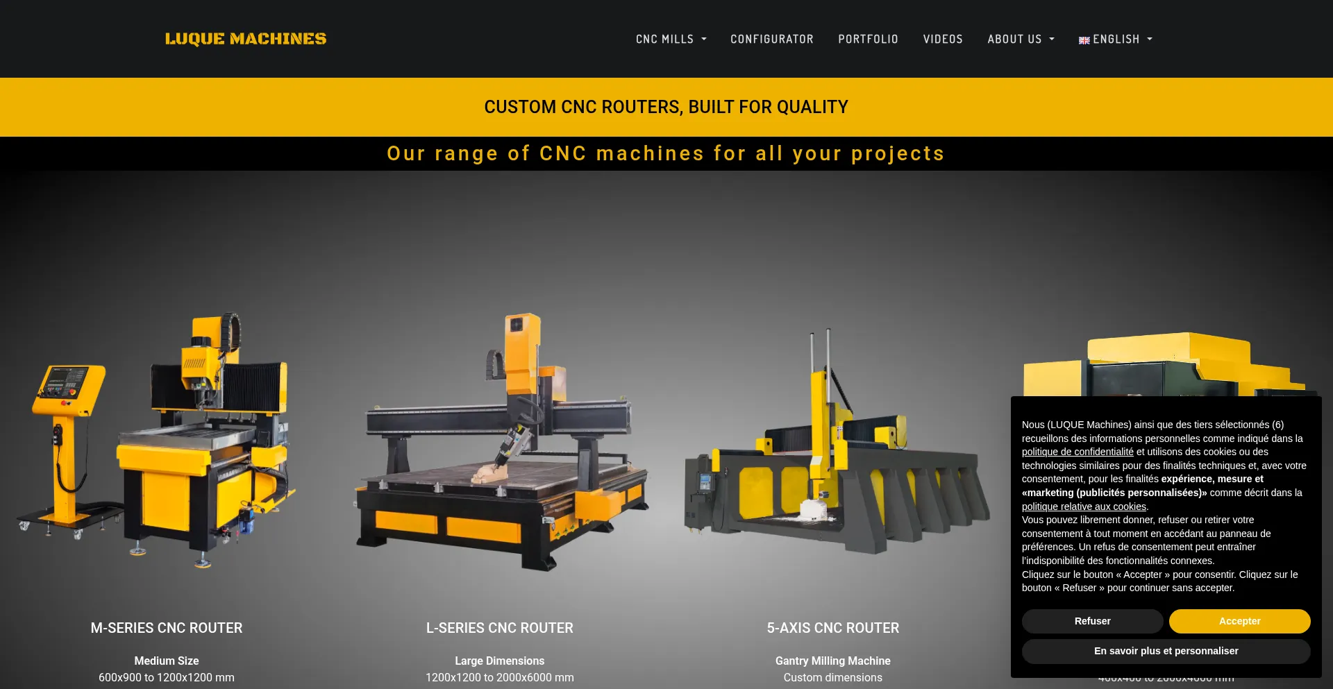 LUQUE Machines : CNC milling machines manufacturer - 3 axis / 4 axis - CNC router - CNC machine for woodwork