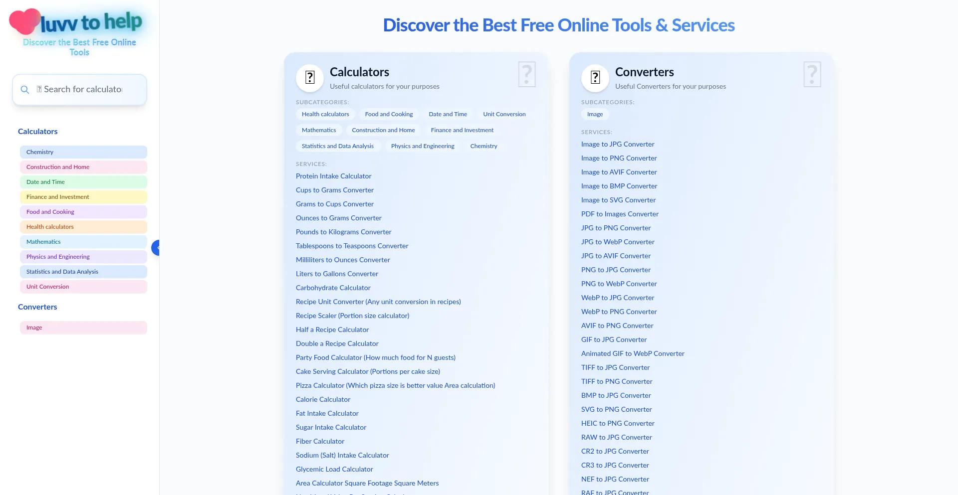 Explore categorized collections of useful online services and tools. Find the best calculators, converters, utilities, and helpers for everyday tasks. All in one convenient plac...