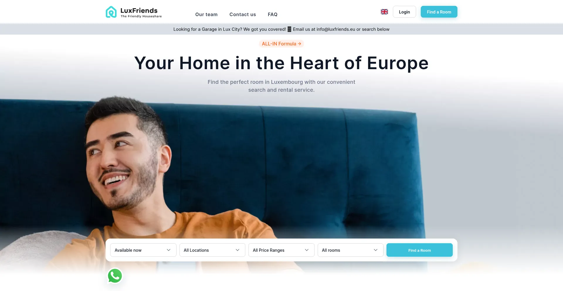Find an affordable flatshare in Luxembourg with LuxFriends. Enjoy no agency fees and excellent customer support. Discover affordable rooms, colocation options, and rent a room i...