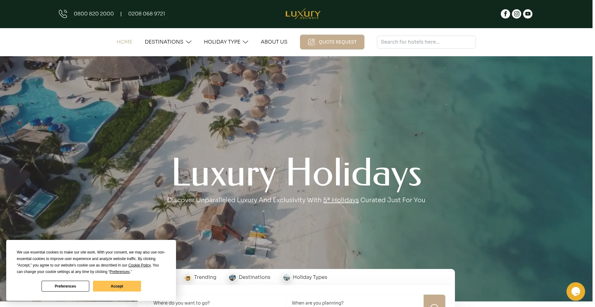 The website implements cookie consent mechanisms in compliance with privacy regulations such as GDPR or CCPA. This demonstrates that luxuryholidays.co.uk adheres to data protection standards and provides users with control over personal data collection practices.