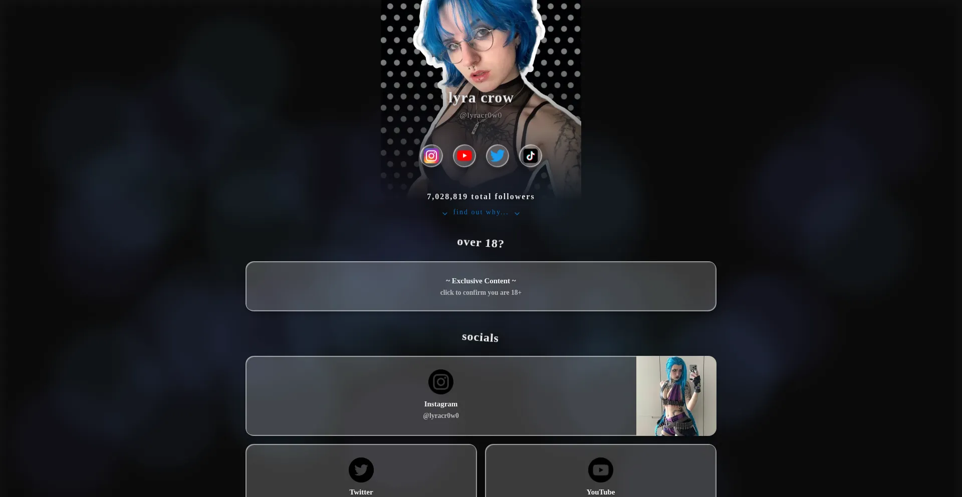 Official lyra crow (lyracr0w0) links webpage! Find all her links here... Instagram: @lyracr0w0, TikTok: @lyracrowo, etc.