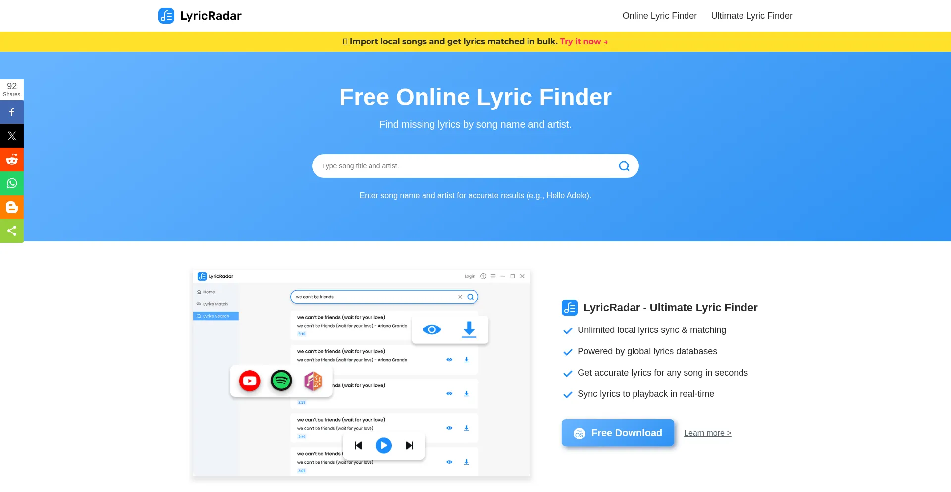 Lyricradar.com Website Review