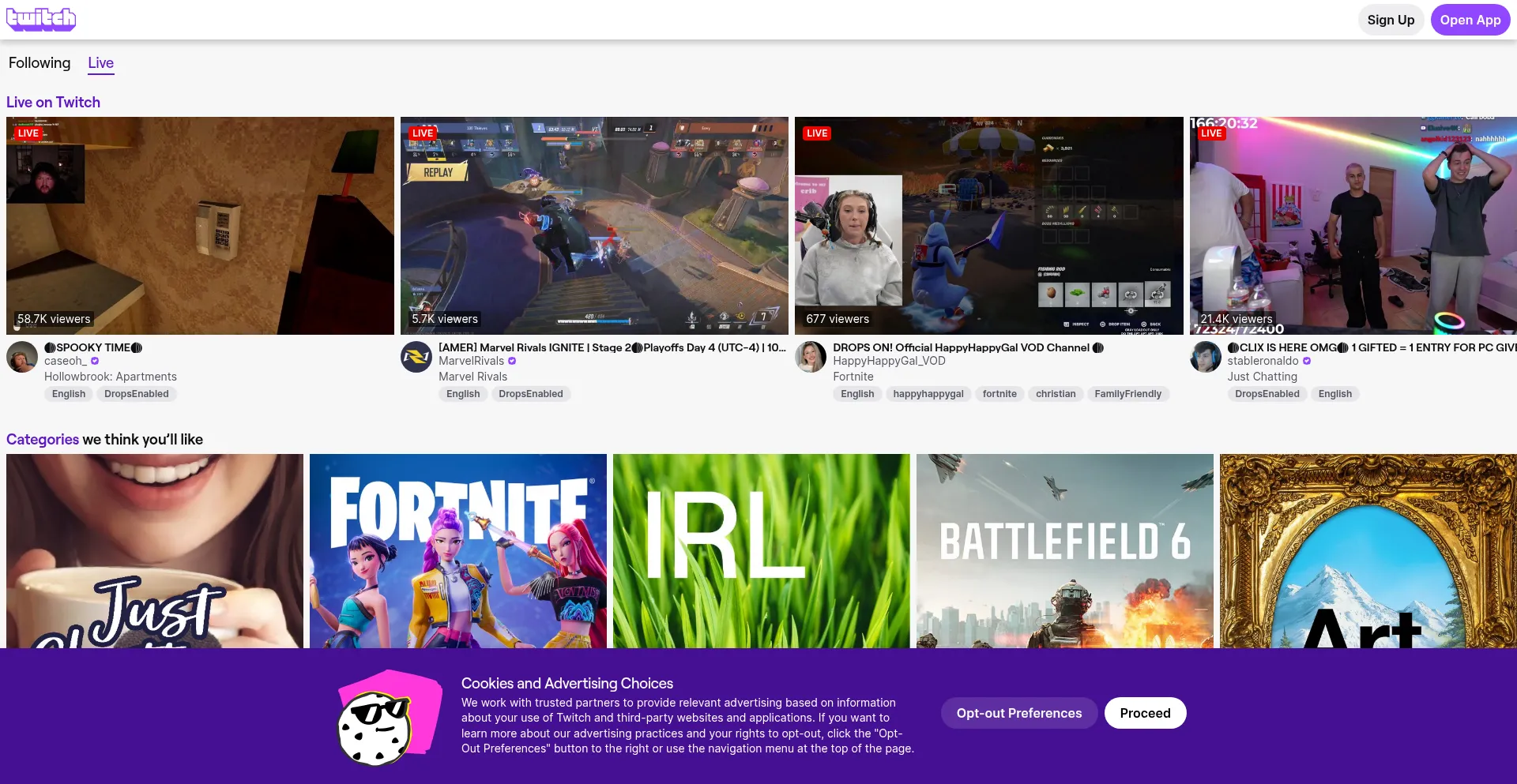 The website implements cookie consent mechanisms in compliance with privacy regulations such as GDPR or CCPA. This demonstrates that m.twitch.tv adheres to data protection standards and provides users with control over personal data collection practices.