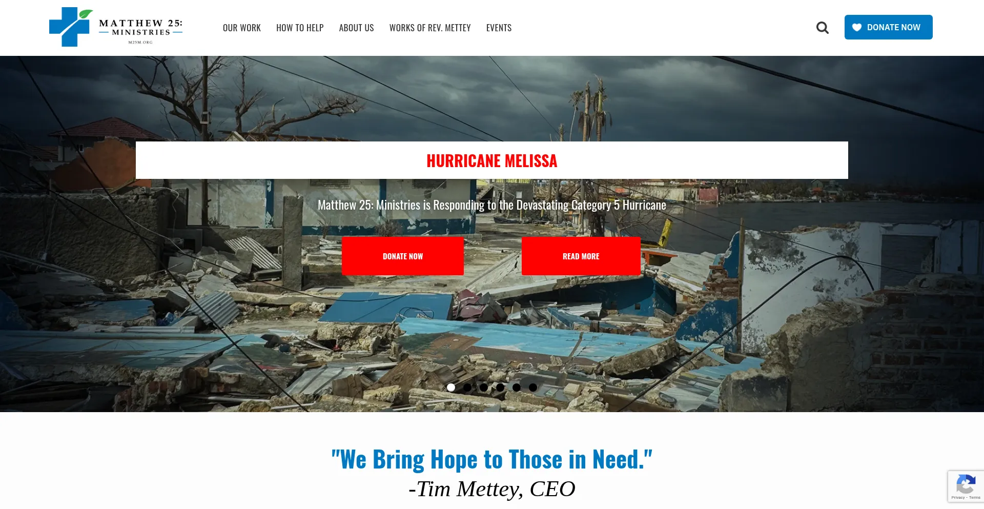 Matthew 25: Ministries is an international humanitarian aid and disaster relief organization helping more than 20 million people in need each year.