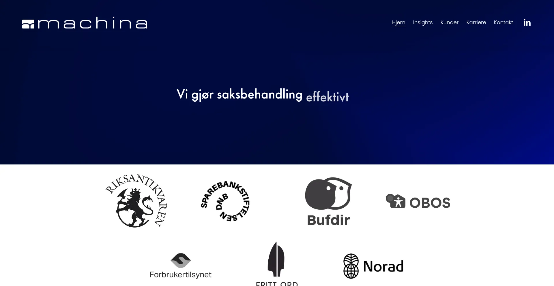 Our analyzer determines that website machina.no is using Squarespace CMS. Squarespace powers about 2.0% of websites and offers an all-in-one platform for building websites.