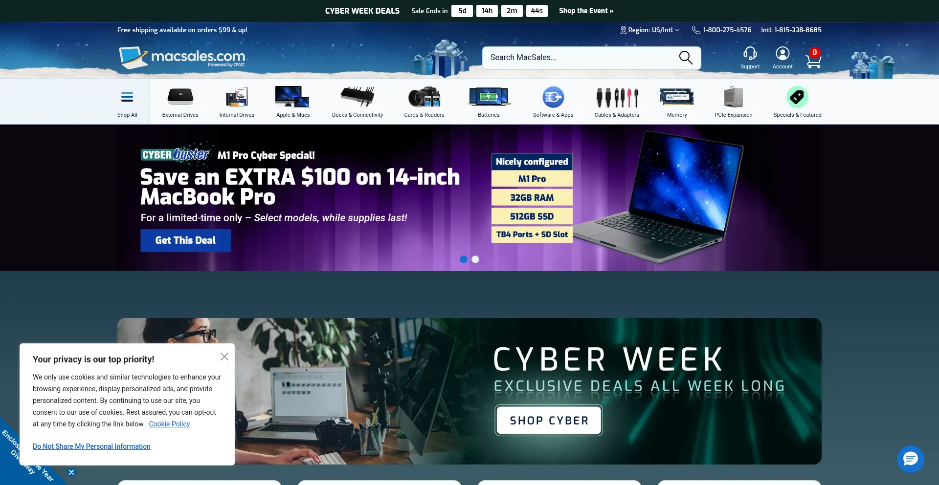 The website implements cookie consent mechanisms in compliance with privacy regulations such as GDPR or CCPA. This demonstrates that macsales.com adheres to data protection standards and provides users with control over personal data collection practices.