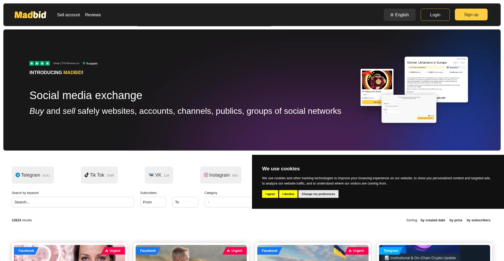Exchange for the safe purchase or sale of sites, channels, publics, groups of social networks | madbid.com
