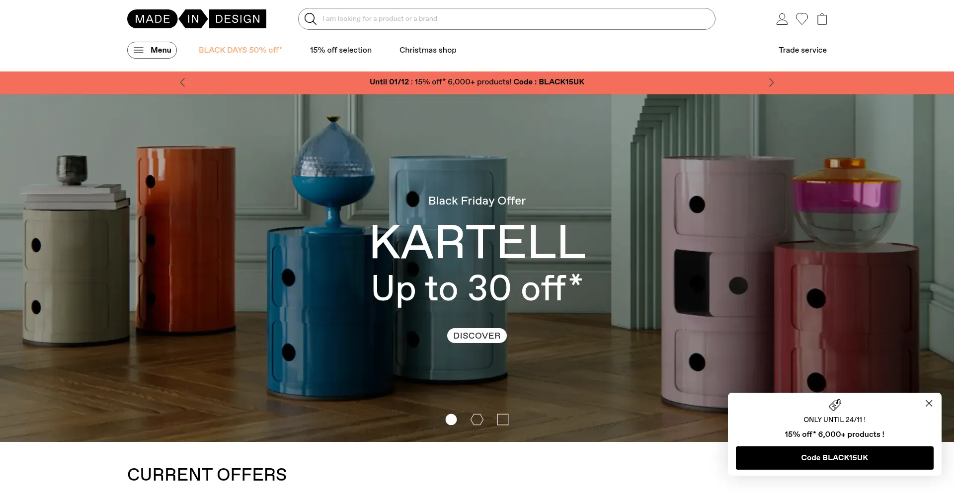 The website leverages popular product names and brands to attract traffic and generate user interest. These products may be offered through promotional campaigns or discount strategies designed to increase visitor engagement and conversion rates for madeindesign.co.uk.
