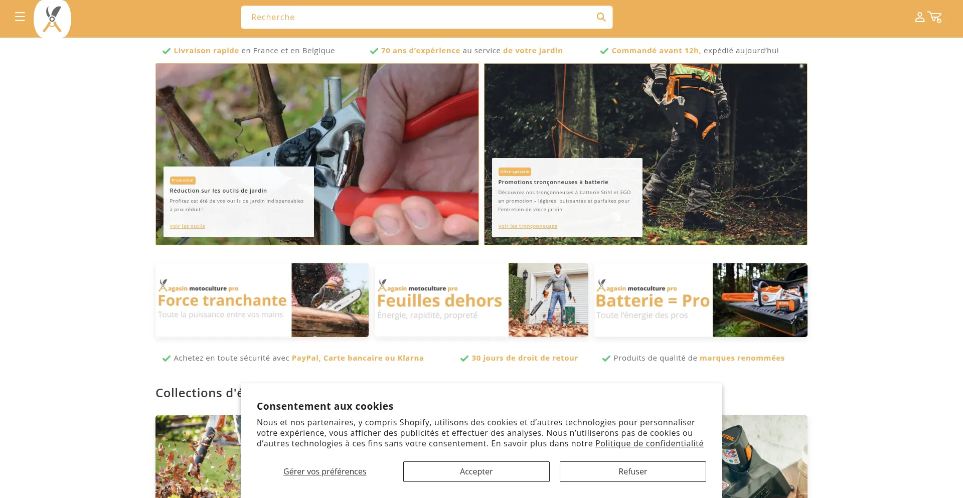 The website implements cookie consent mechanisms in compliance with privacy regulations such as GDPR or CCPA. This demonstrates that magasinmotoculture.fr adheres to data protection standards and provides users with control over personal data collection practices.