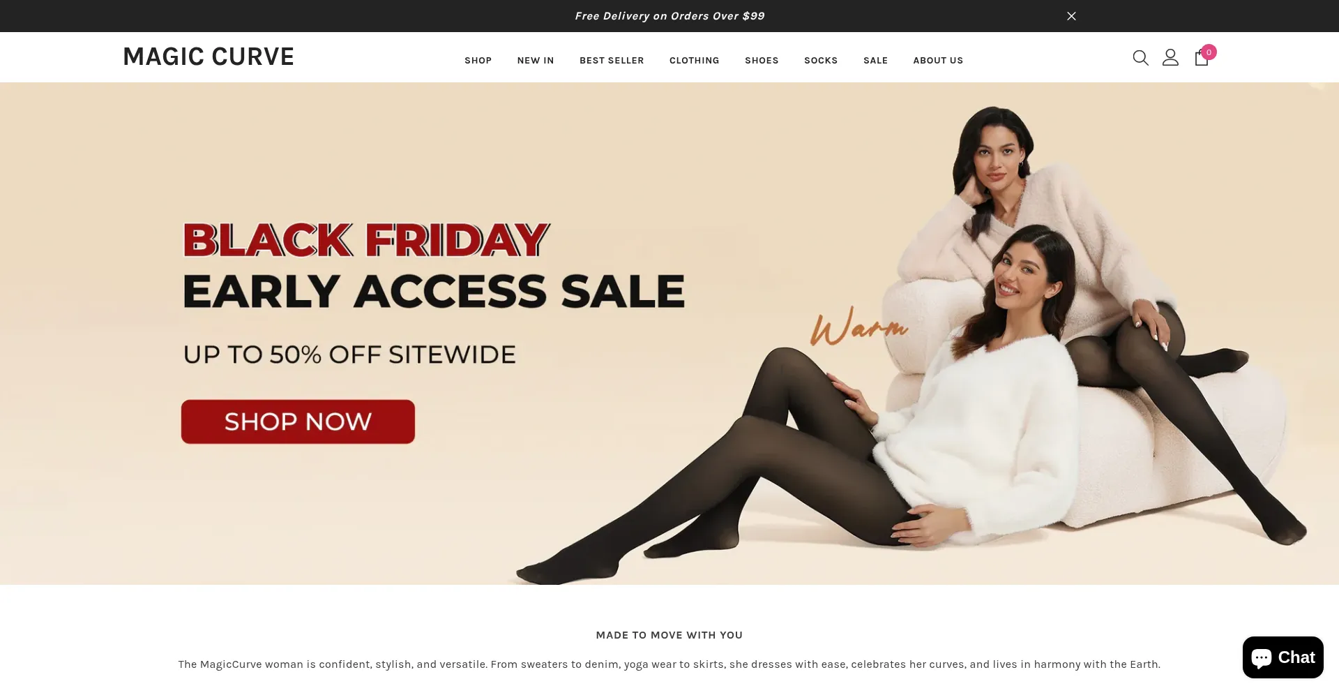 Our analyzer determines that website magic-curve.com is using Shopify CMS. Shopify is a popular e-commerce platform, powering around 4.4% of websites globally.