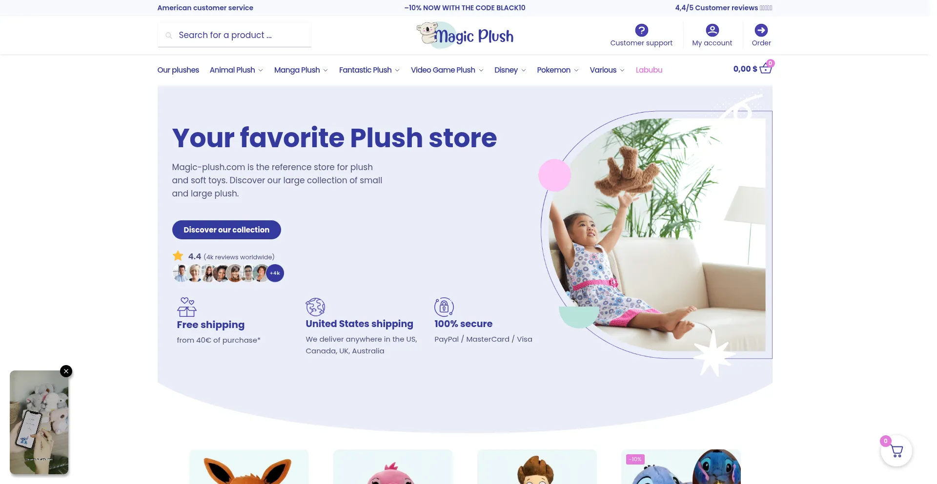 Magic-plush.com is the reference store for plush and soft toys. Discover our large collection of small and large plush.