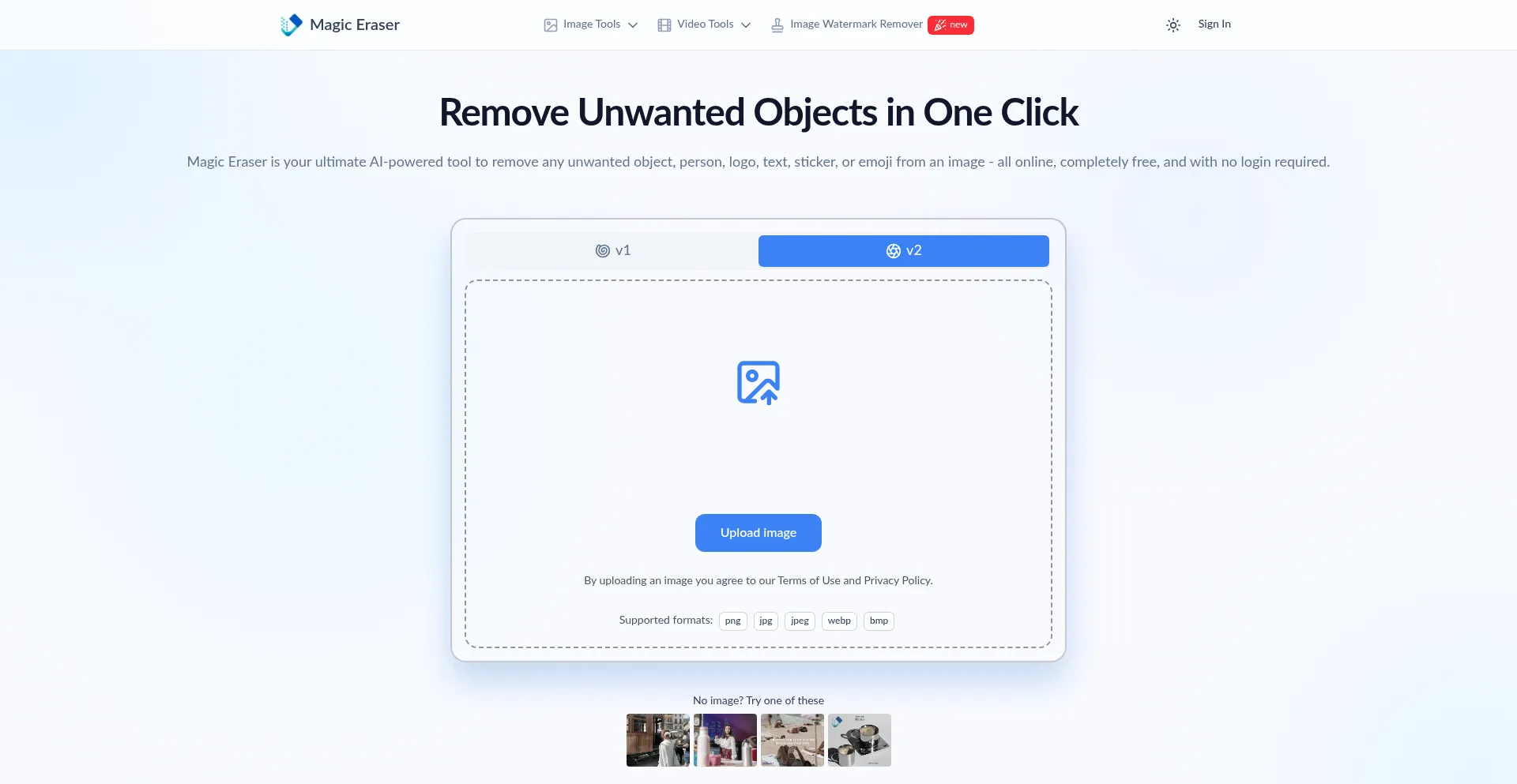 Clean up your photos with Magic Eraser! Effortlessly remove people, emojis, text, logos, and more unwanted object from images. Free, fast, no sign-up. Restore your pics to perfe...