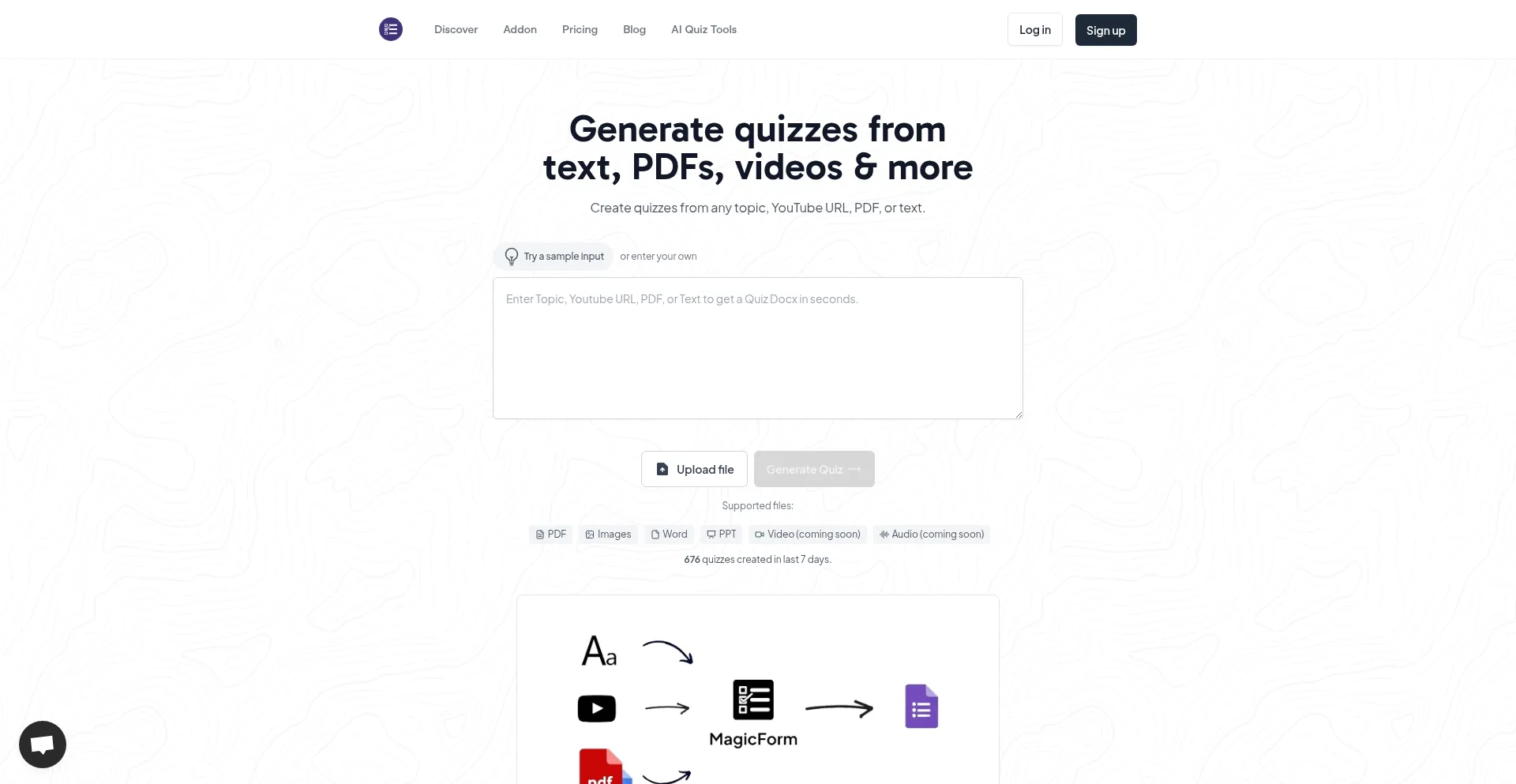 MagicForm.app helps teachers, students, and professionals to create quizzes from any text in few seconds.