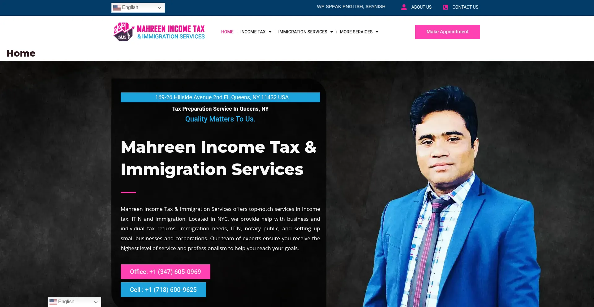 Mahreen Income Tax & Immigration Services offers top-notch services in Income tax, ITIN and immigration.