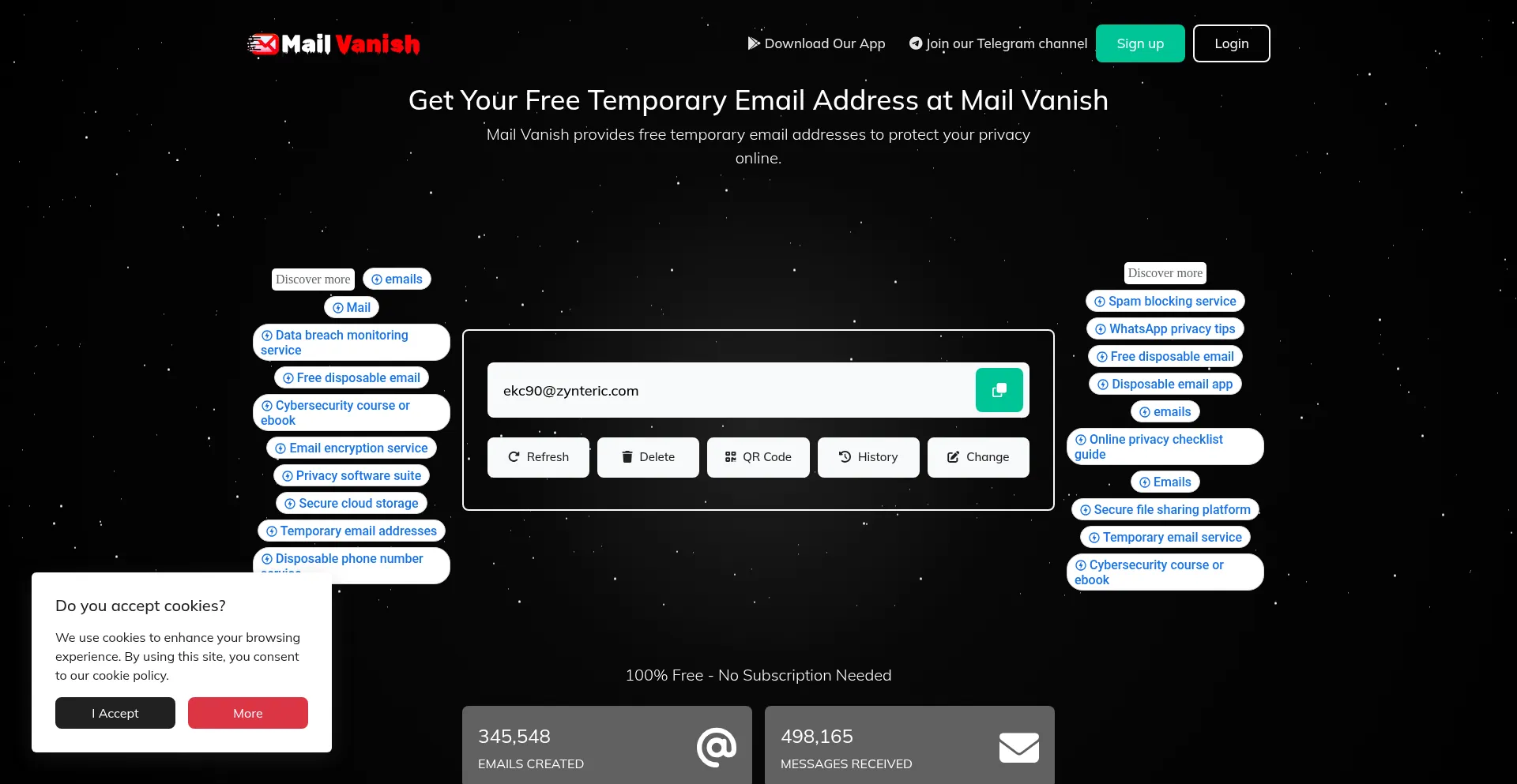 Use a disposable temporary email address and keep your real email safe. Mail-Vanish helps protect your main email from unwanted spam.