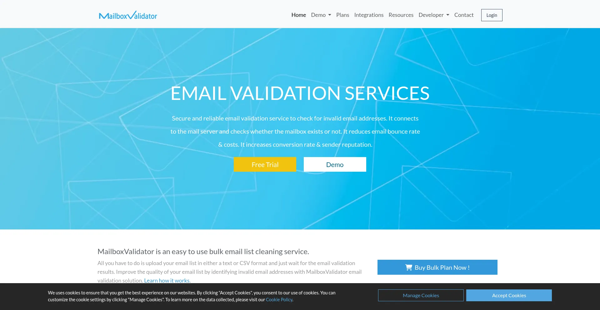 MailboxValidator email validation clean email lists and reduces bounce. It connects to the mail server and checks whether the mailbox exists or not.