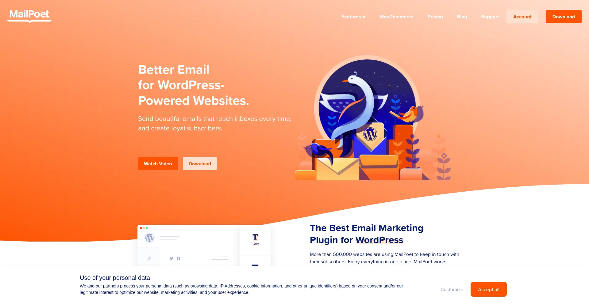 The website implements cookie consent mechanisms in compliance with privacy regulations such as GDPR or CCPA. This demonstrates that mailpoet.com adheres to data protection standards and provides users with control over personal data collection practices.