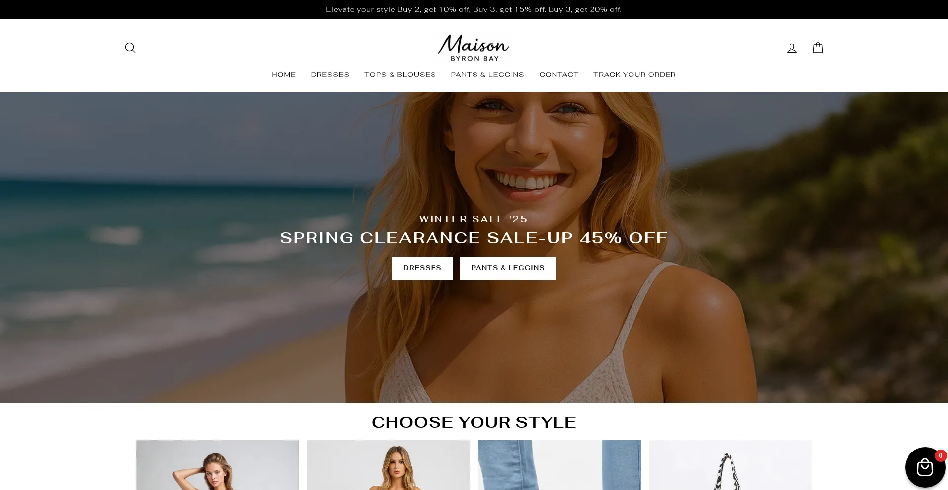Analysis indicates that maisonbyronbay.com operates as an e-commerce platform facilitating online transactions for goods or services. The website implements shopping cart functionality, payment processing systems, and product catalog features typical of commercial retail operations.
