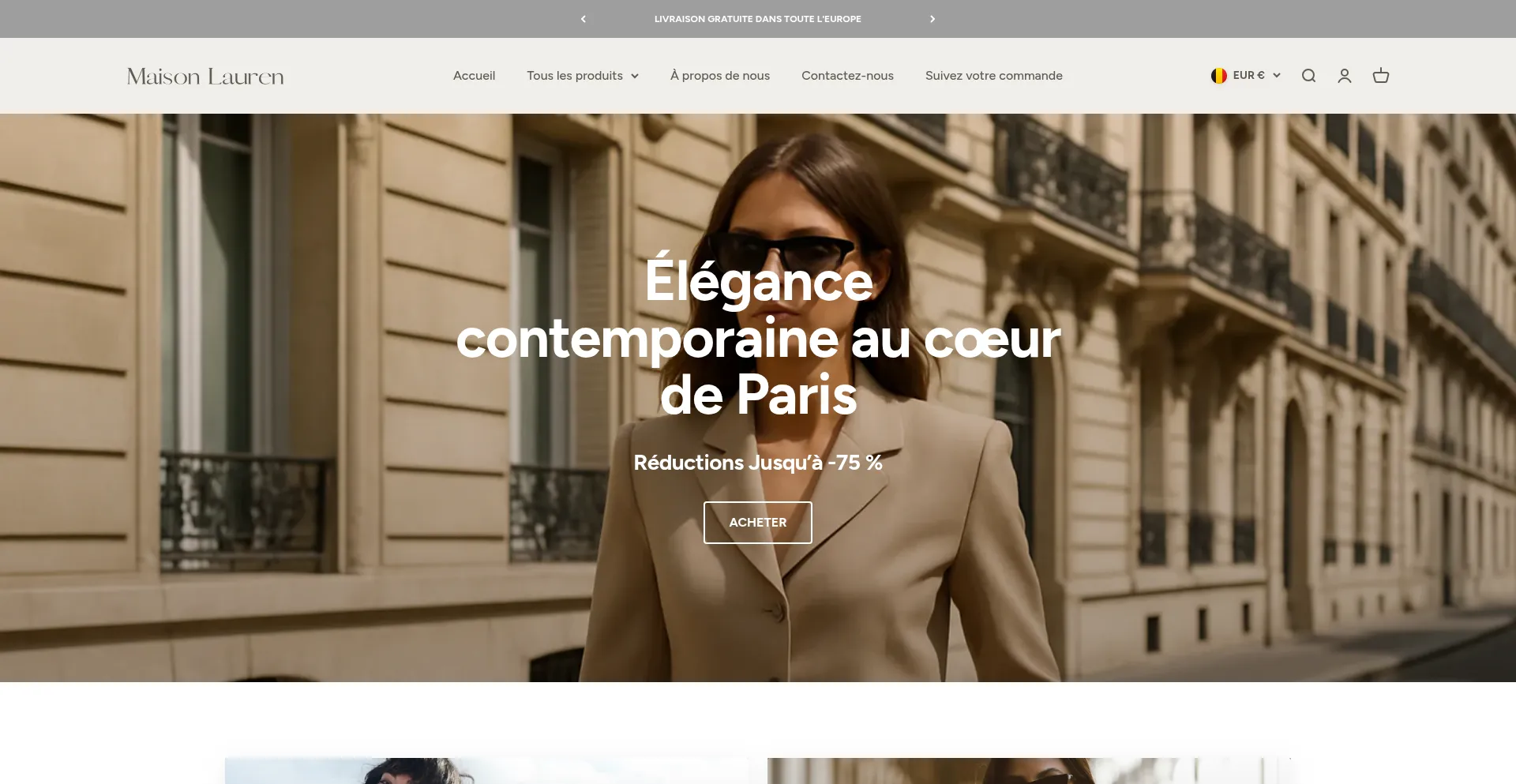 Analysis indicates that maisonlauren.fr operates as an e-commerce platform facilitating online transactions for goods or services. The website implements shopping cart functionality, payment processing systems, and product catalog features typical of commercial retail operations.