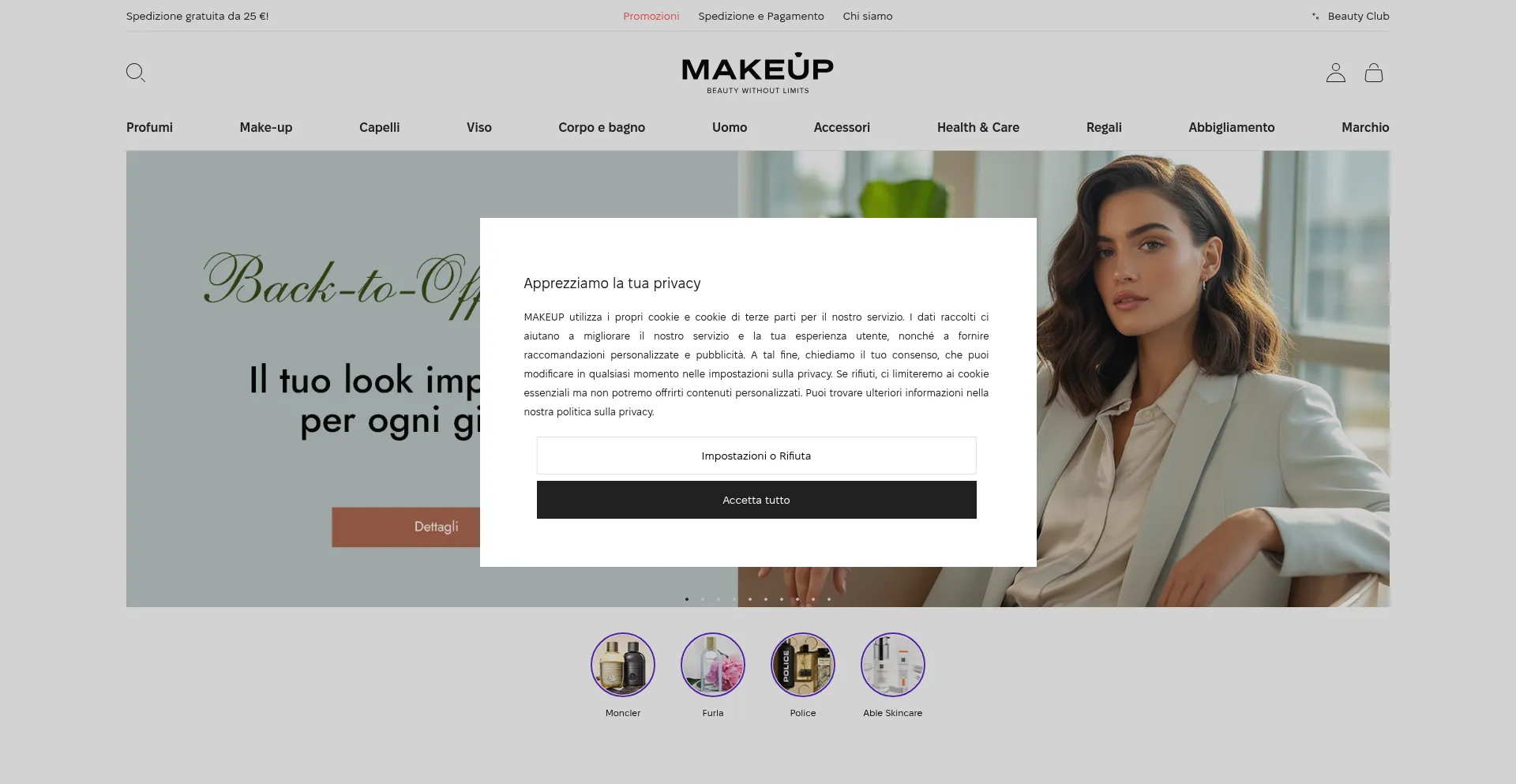 Analysis indicates that makeup.it operates as an e-commerce platform facilitating online transactions for goods or services. The website implements shopping cart functionality, payment processing systems, and product catalog features typical of commercial retail operations.