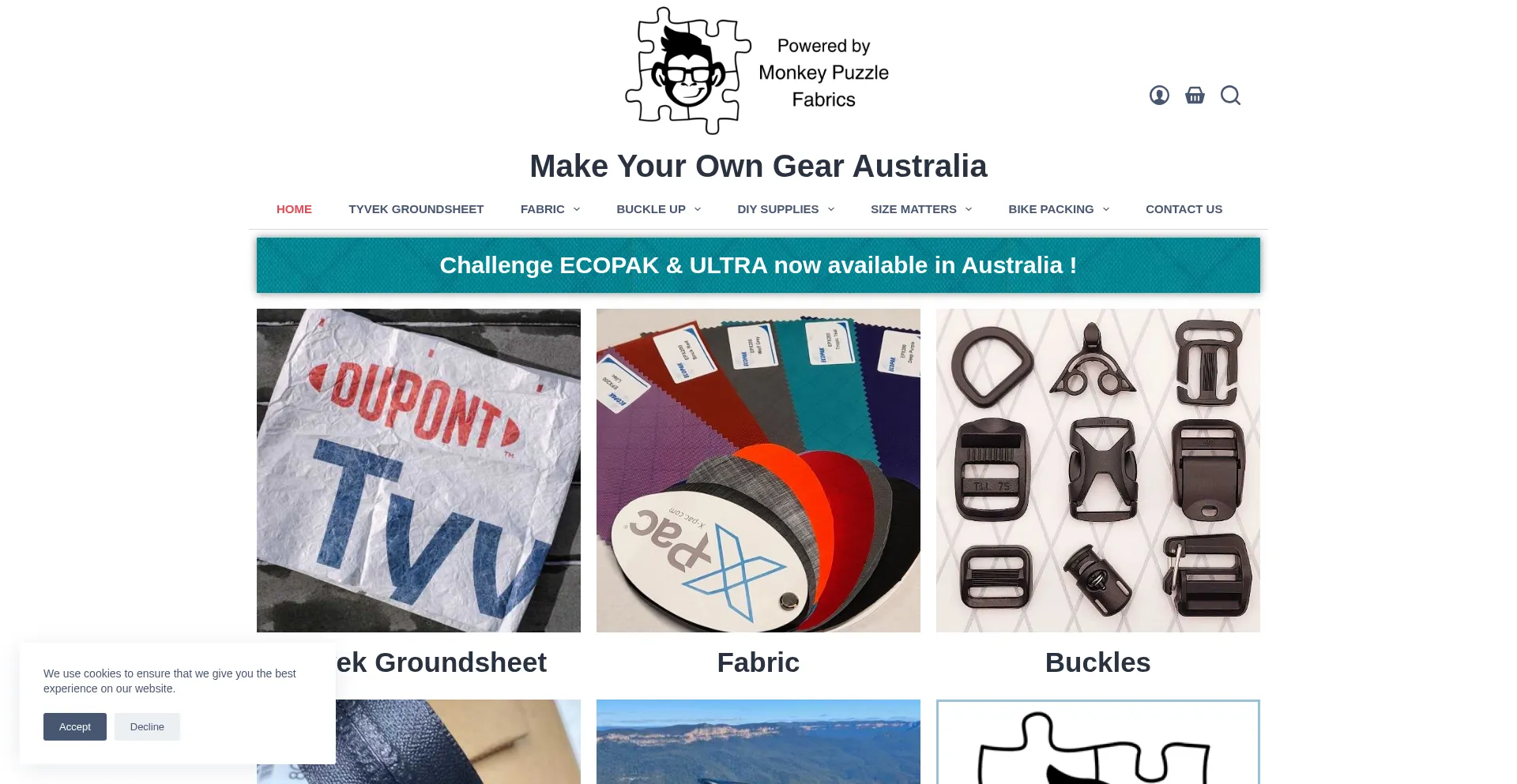 Quality MYOG products for Australian Makers - big and small. Tyvek groundsheets, technical fabrics, buckles, DIY supplies, bike packing & more...