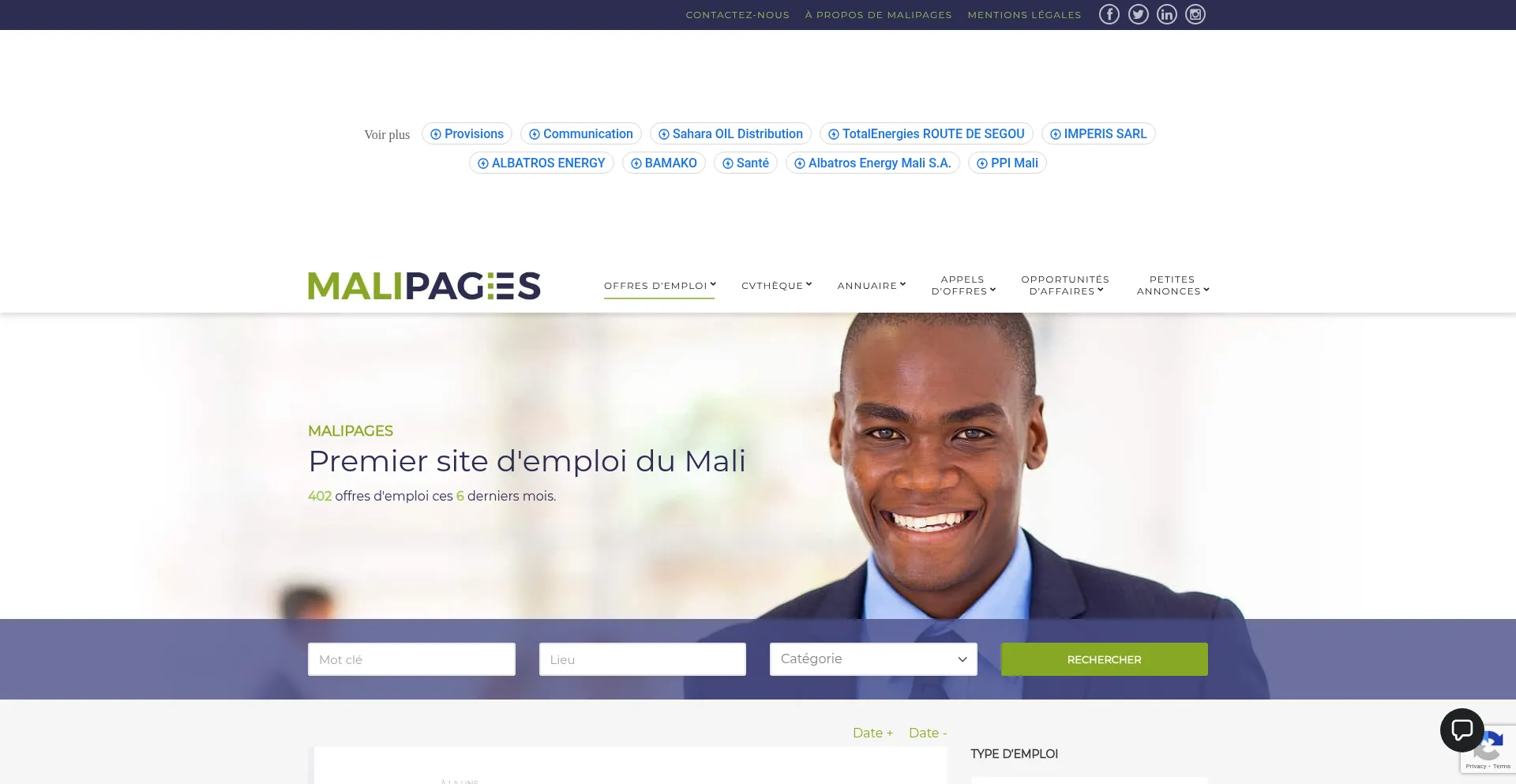 Découvrez les meilleures offres d'emploi au Mali sur Malipages. Postulez en ligne, déposez votre CV et trouvez l’emploi qui vous correspond