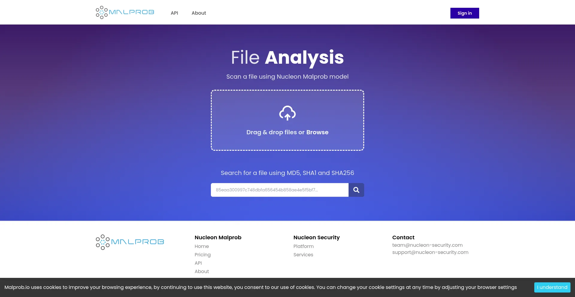 Malprob is a leading malware detection and identification service, powered by cutting-edge AI technology. Our platform seamlessly connects to application programming interfaces ...
