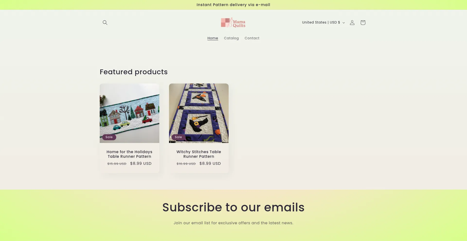 Analysis indicates that mamaquilts.com operates as an e-commerce platform facilitating online transactions for goods or services. The website implements shopping cart functionality, payment processing systems, and product catalog features typical of commercial retail operations.