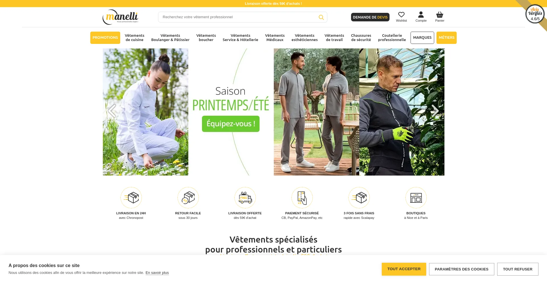 Manelli, spécialiste du vêtement professionnel vous propose vêtements professionnels et chaussures de sécurité pour tous les métiers. Livraison de votre tenue pro sur tout...