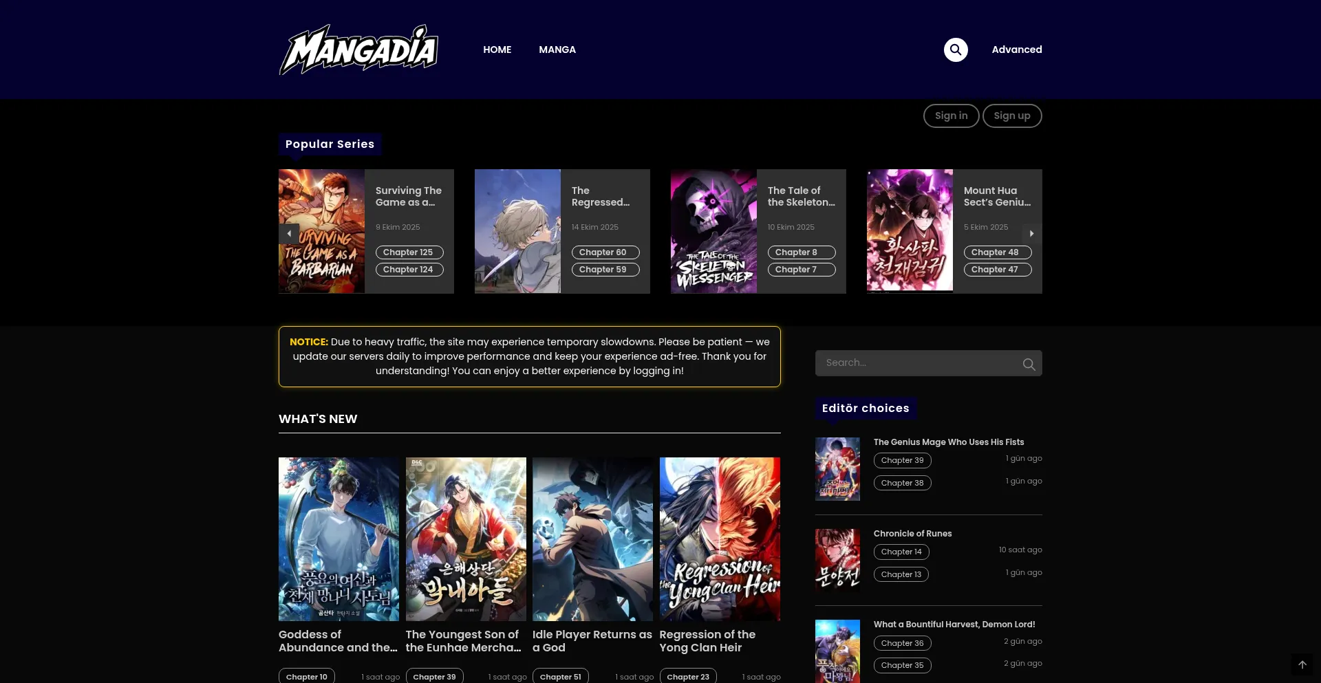 Read manga, manhwa, manhua & webtoon online in English for free. Updated daily with premium chapters on MangaDia.