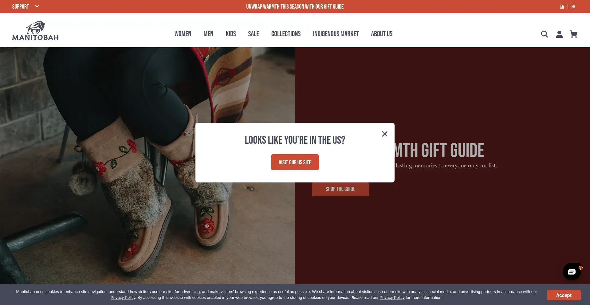 Analysis indicates that manitobah.ca operates as an e-commerce platform facilitating online transactions for goods or services. The website implements shopping cart functionality, payment processing systems, and product catalog features typical of commercial retail operations.