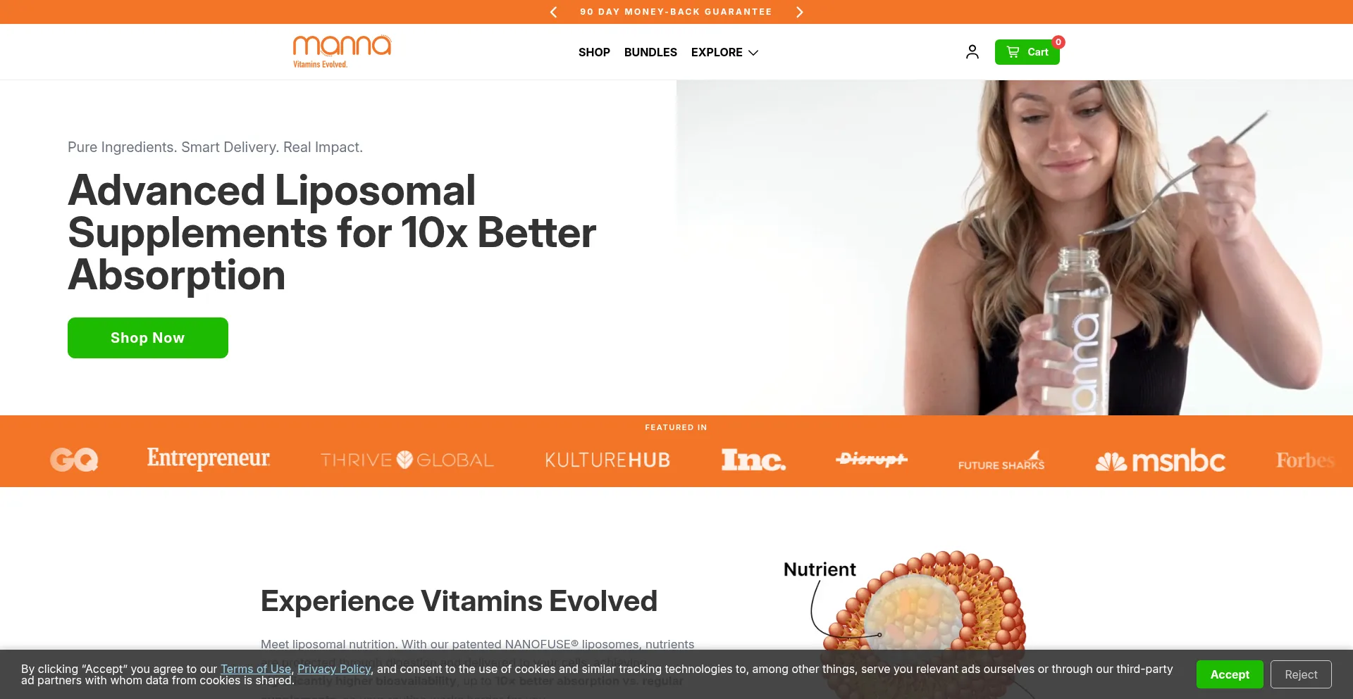 Manna Vitamins uses liposomal encapsulation to create the highest quality, best-absorbing vitamins and supplements on the market today