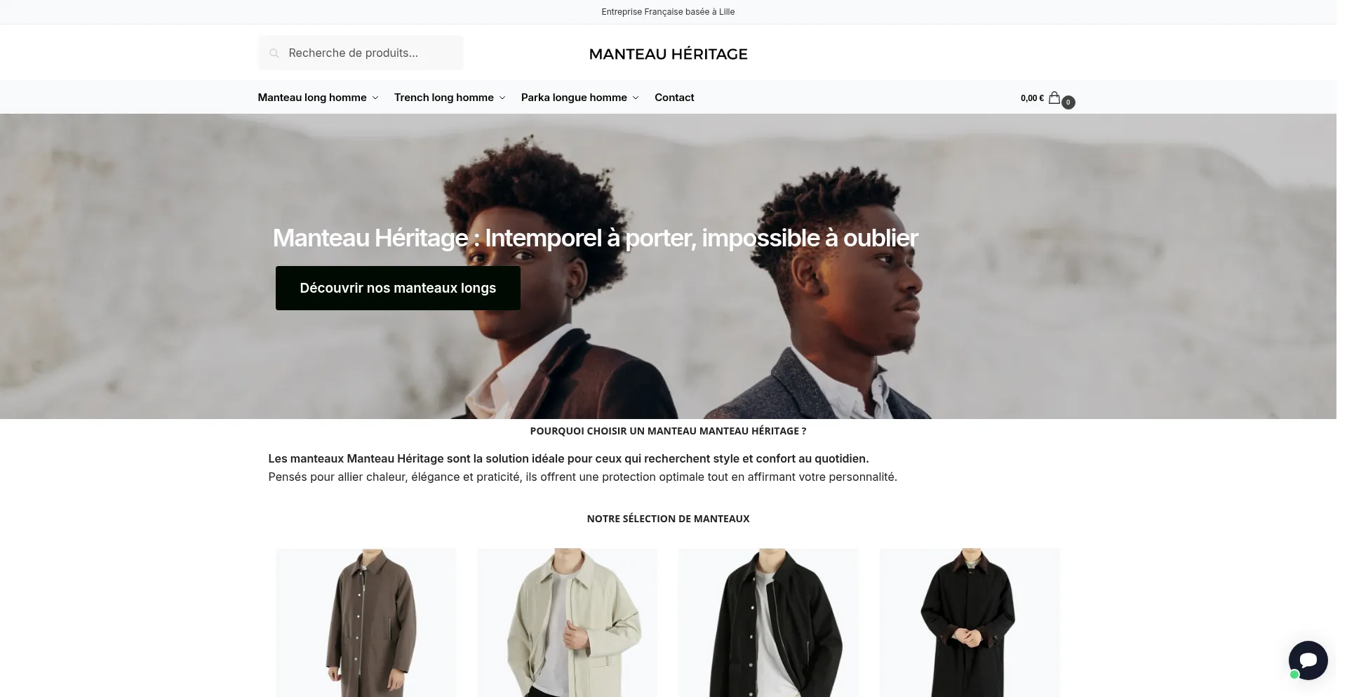 Analysis indicates that manteau-heritage.fr operates as an e-commerce platform facilitating online transactions for goods or services. The website implements shopping cart functionality, payment processing systems, and product catalog features typical of commercial retail operations.