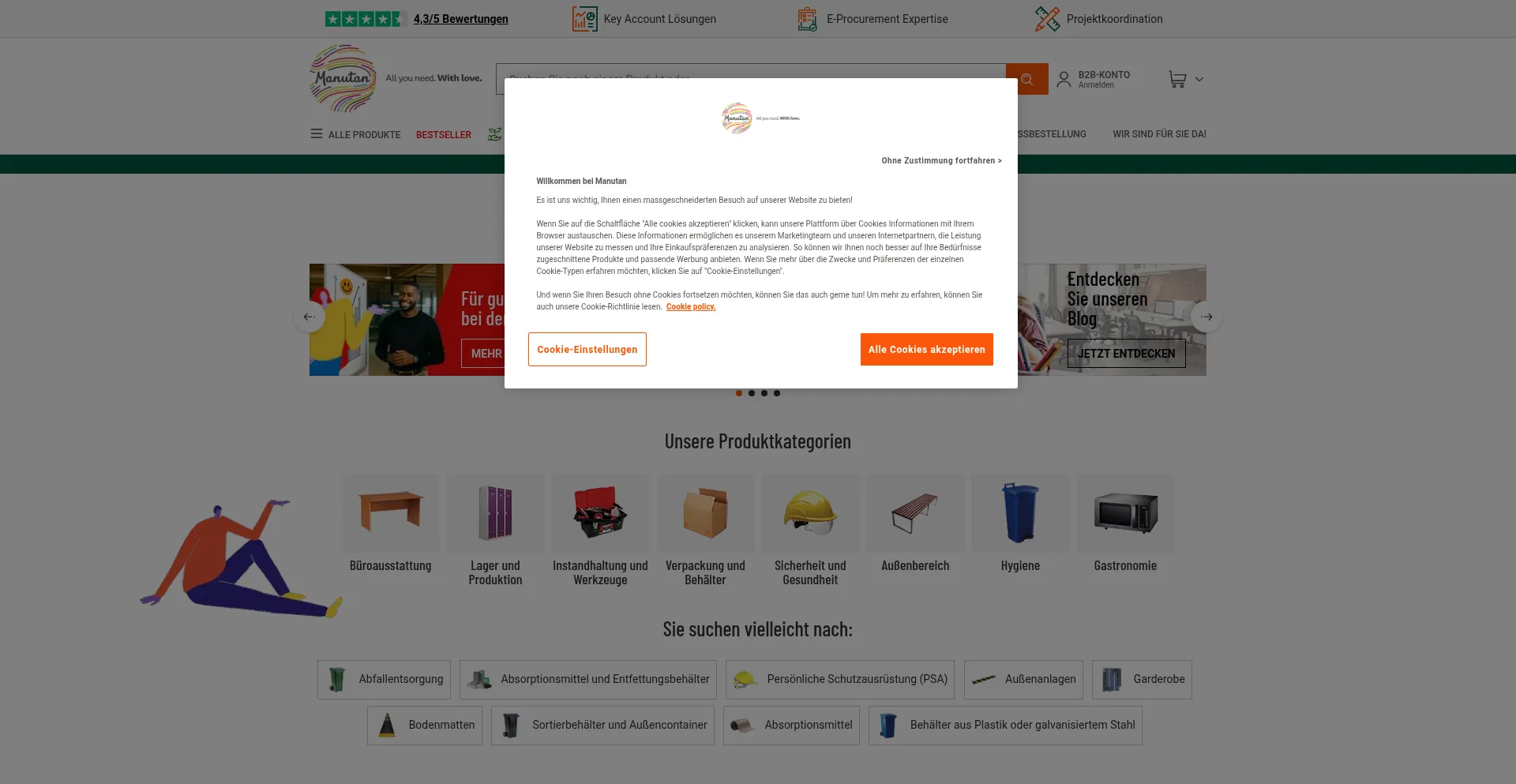 The website implements cookie consent mechanisms in compliance with privacy regulations such as GDPR or CCPA. This demonstrates that manutan.de adheres to data protection standards and provides users with control over personal data collection practices.