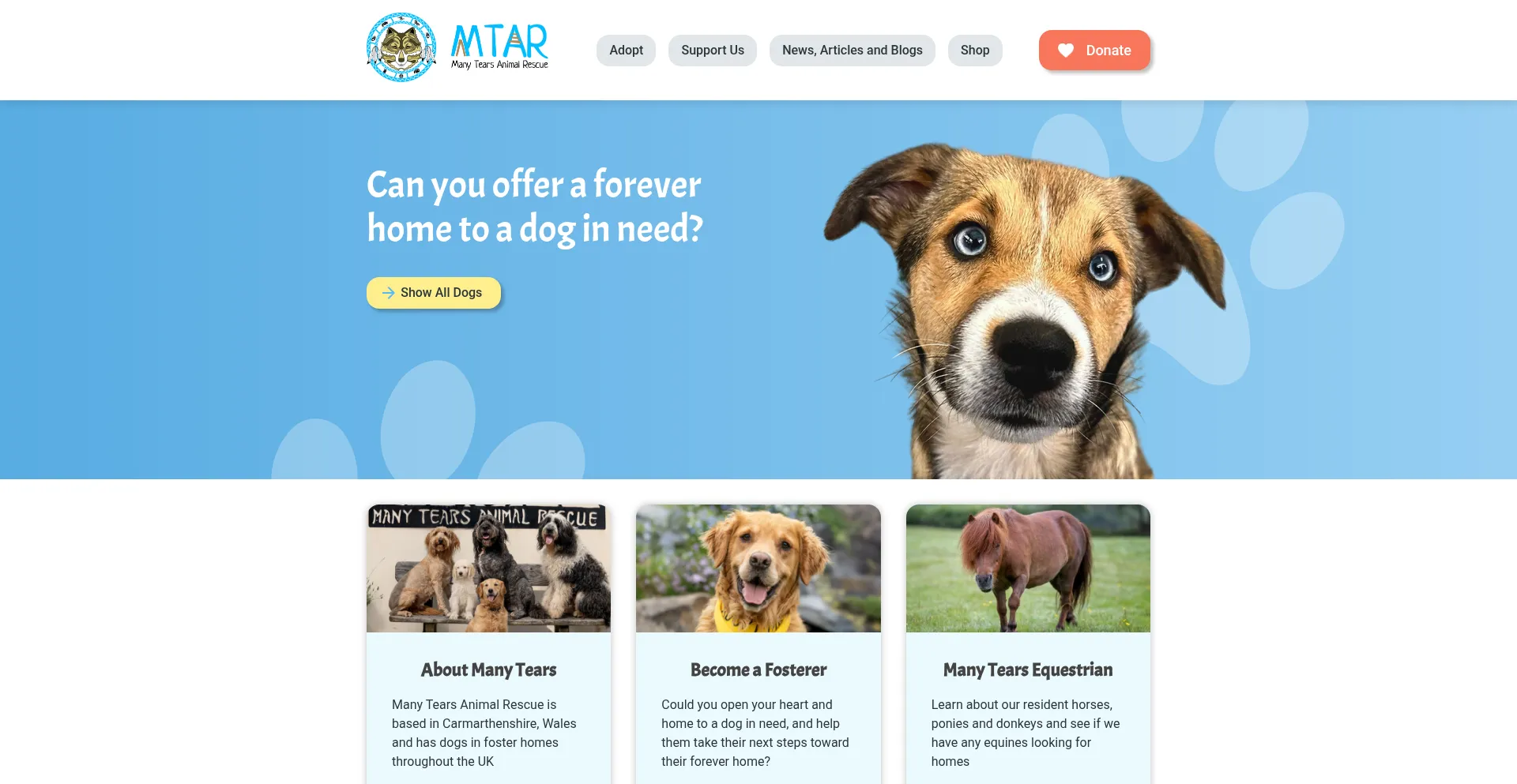 Tears Animal Rescue (MTAR) is a dog rescue charity based in South Wales but has dogs in foster homes throughout the UK. We also take in a small amount of cats.