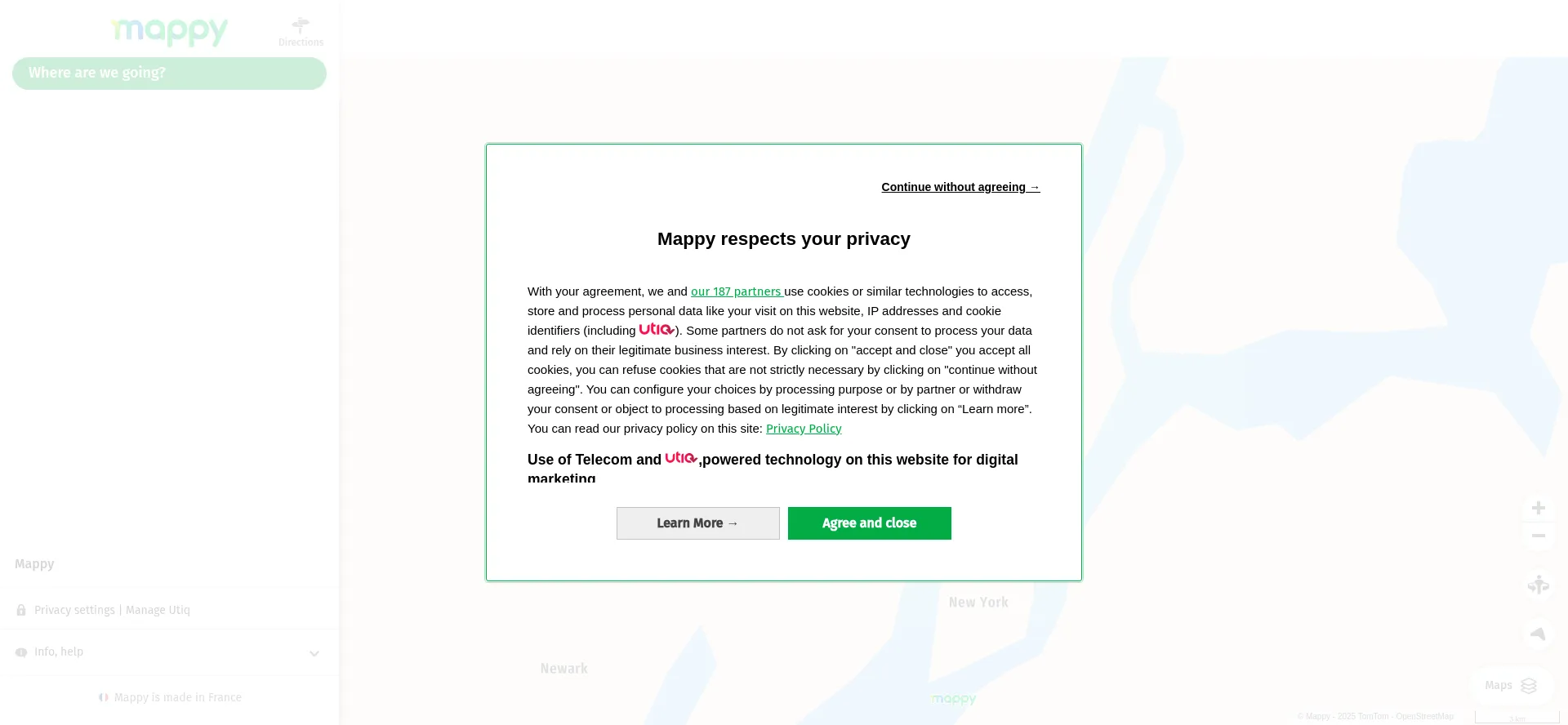 The website implements cookie consent mechanisms in compliance with privacy regulations such as GDPR or CCPA. This demonstrates that mappy.com adheres to data protection standards and provides users with control over personal data collection practices.