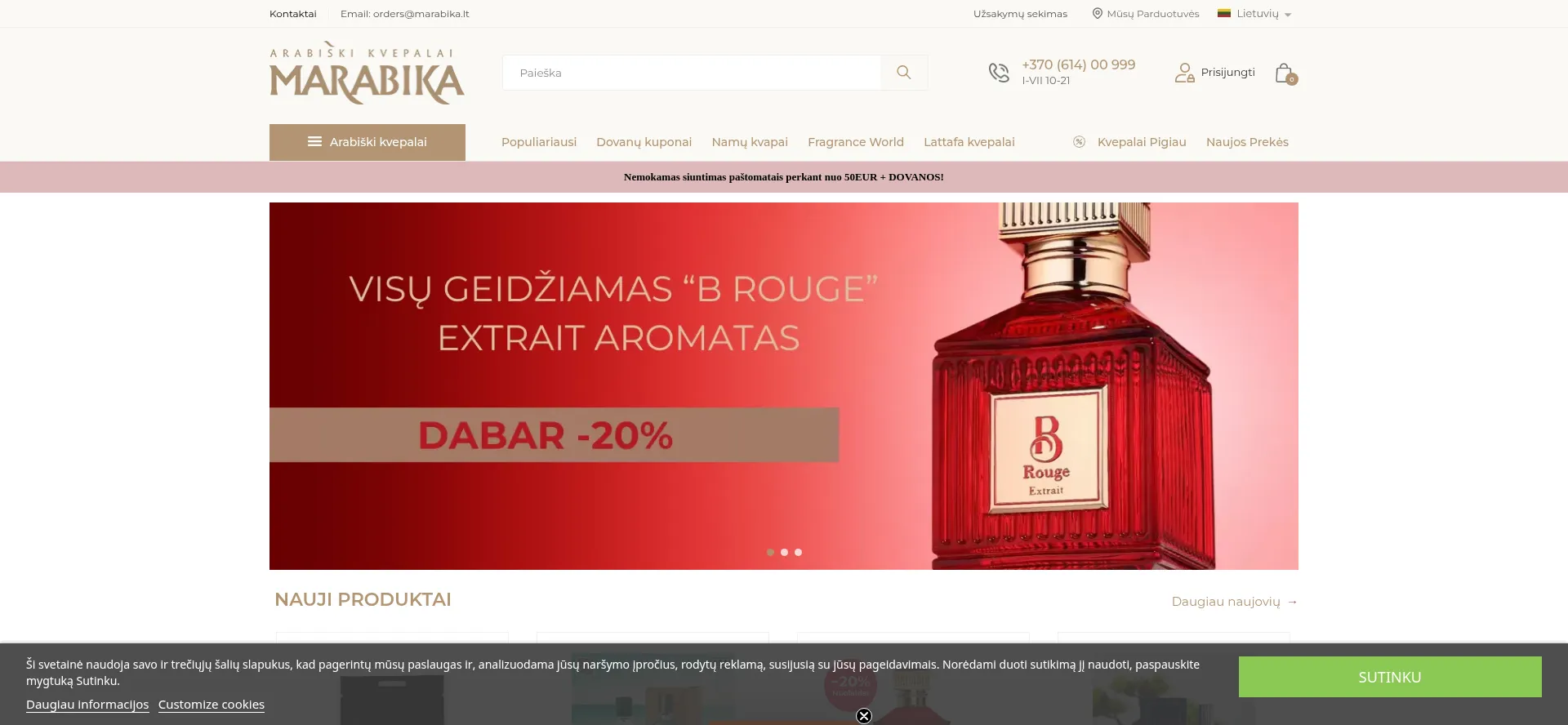 The website implements cookie consent mechanisms in compliance with privacy regulations such as GDPR or CCPA. This demonstrates that marabika.lt adheres to data protection standards and provides users with control over personal data collection practices.