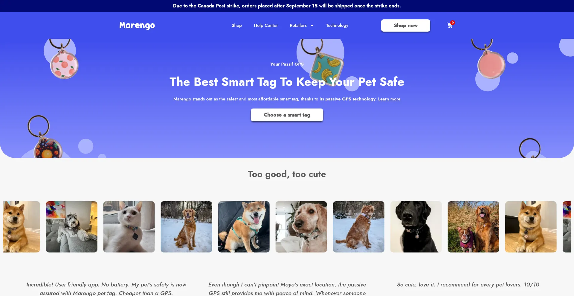 The Canadian smart tag for pets. Scan for instant access to your pet's profile. Passive GPS, Community Alert, Medical Record and more.
