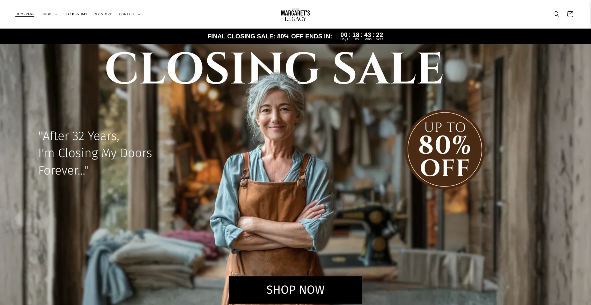 Our analyzer determines that website margarets-legacy.com is using Shopify CMS. Shopify is a popular e-commerce platform, powering around 4.4% of websites globally.