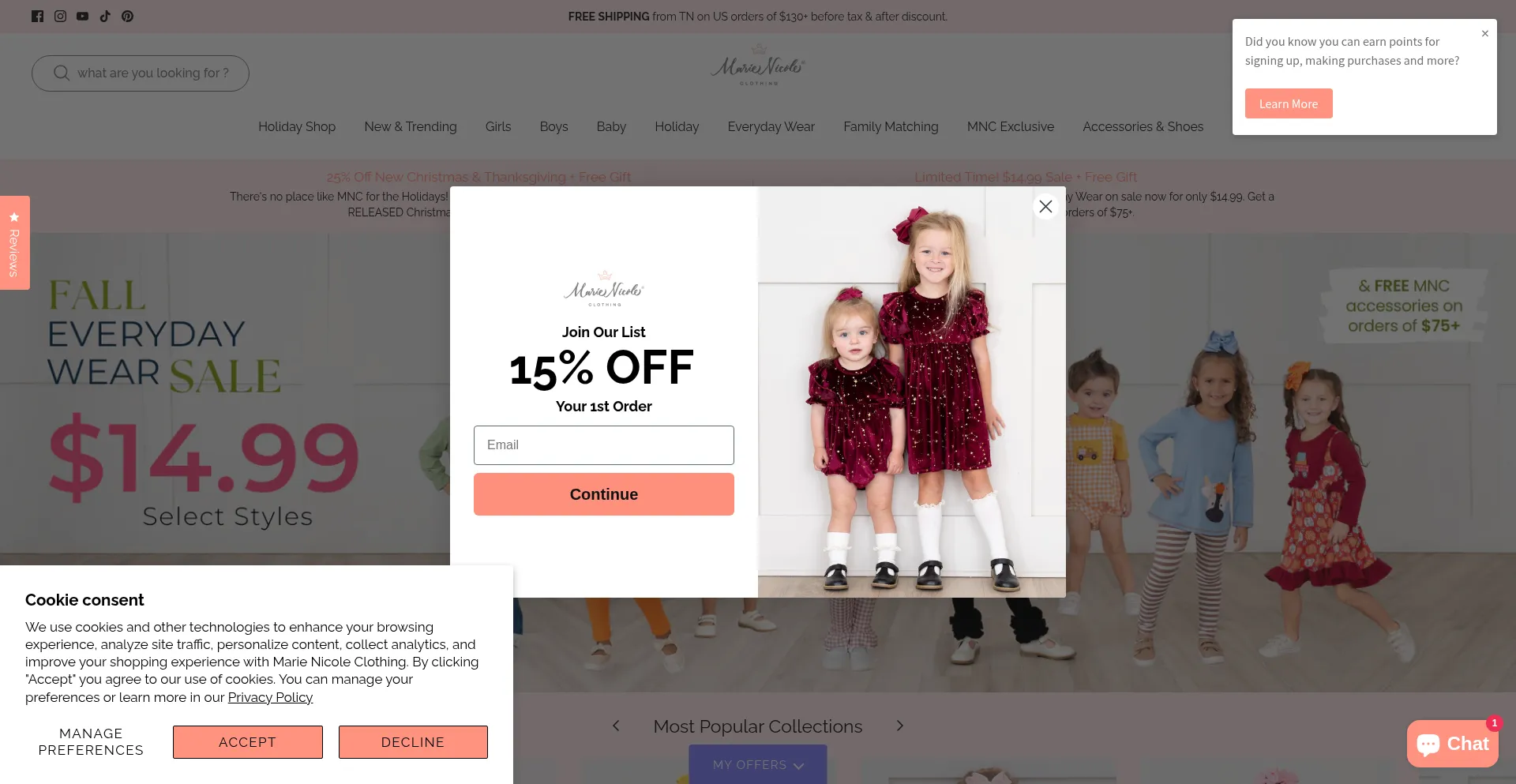 The website implements cookie consent mechanisms in compliance with privacy regulations such as GDPR or CCPA. This demonstrates that marienicoleclothing.com adheres to data protection standards and provides users with control over personal data collection practices.