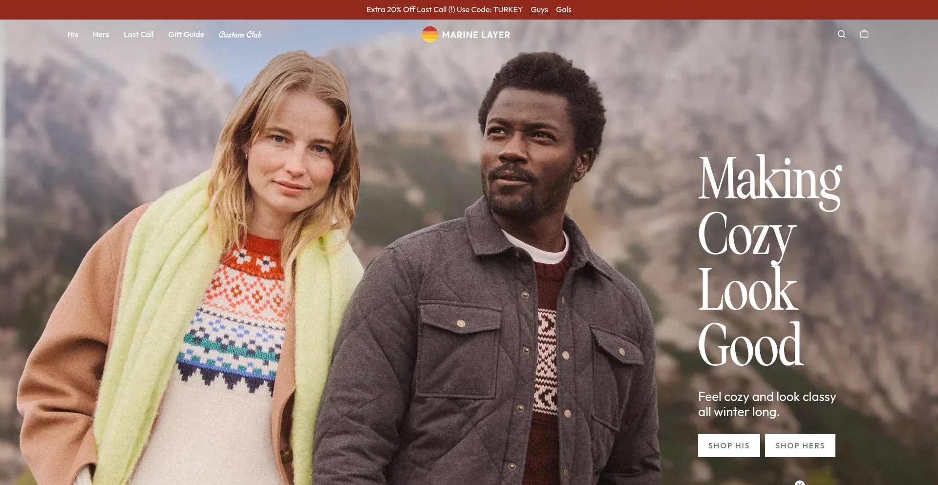 Analysis indicates that marinelayer.com operates as an e-commerce platform facilitating online transactions for goods or services. The website implements shopping cart functionality, payment processing systems, and product catalog features typical of commercial retail operations.