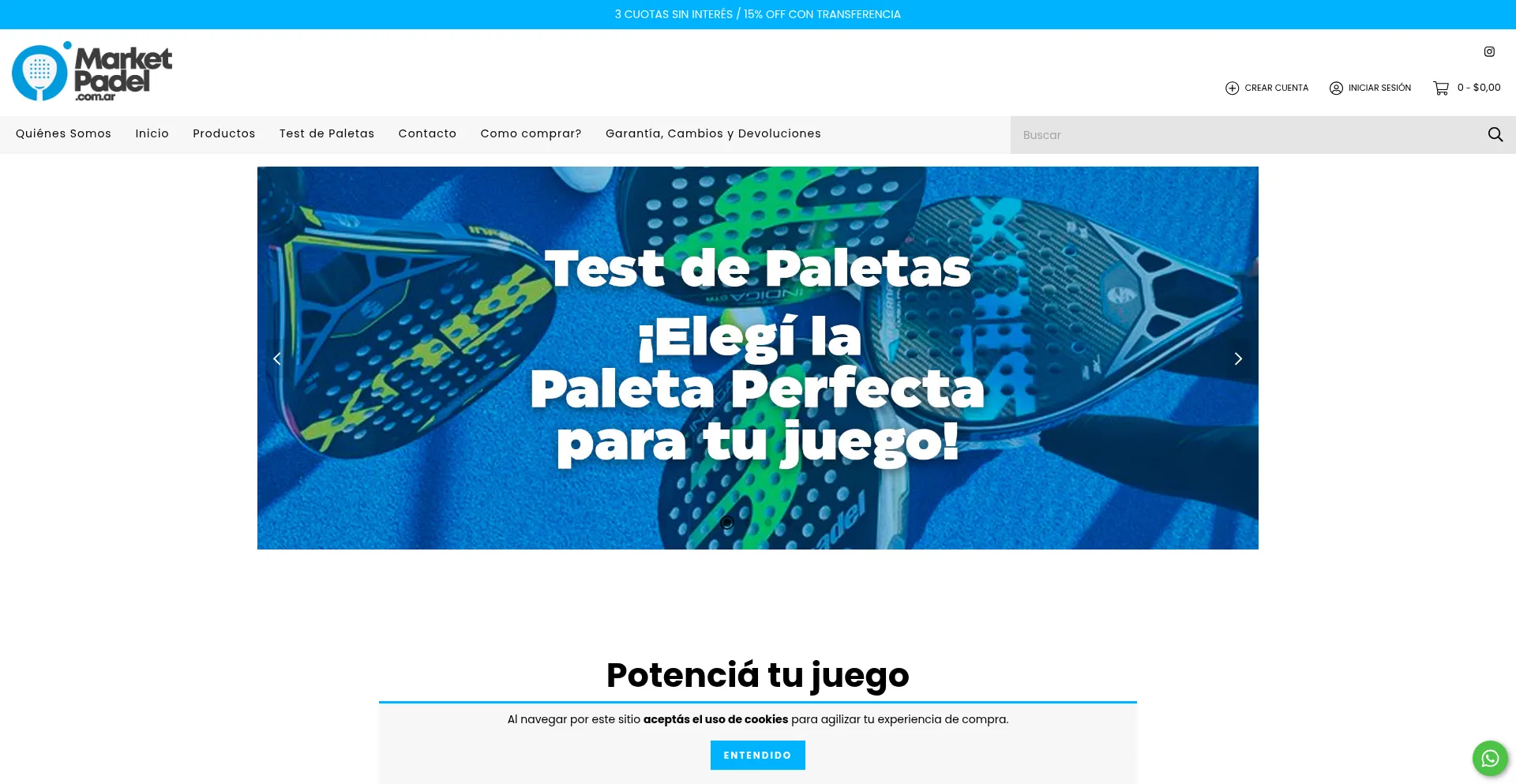 Analysis indicates that marketpadel.com.ar operates as an e-commerce platform facilitating online transactions for goods or services. The website implements shopping cart functionality, payment processing systems, and product catalog features typical of commercial retail operations.