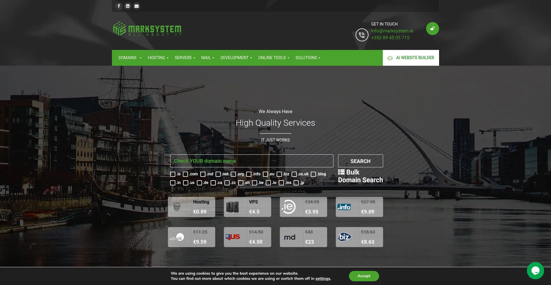 The domain has maintained active status for an extended period, indicating operational stability and established web presence. This longevity for marksystem.ie suggests legitimate business operations and sustained user engagement over time.