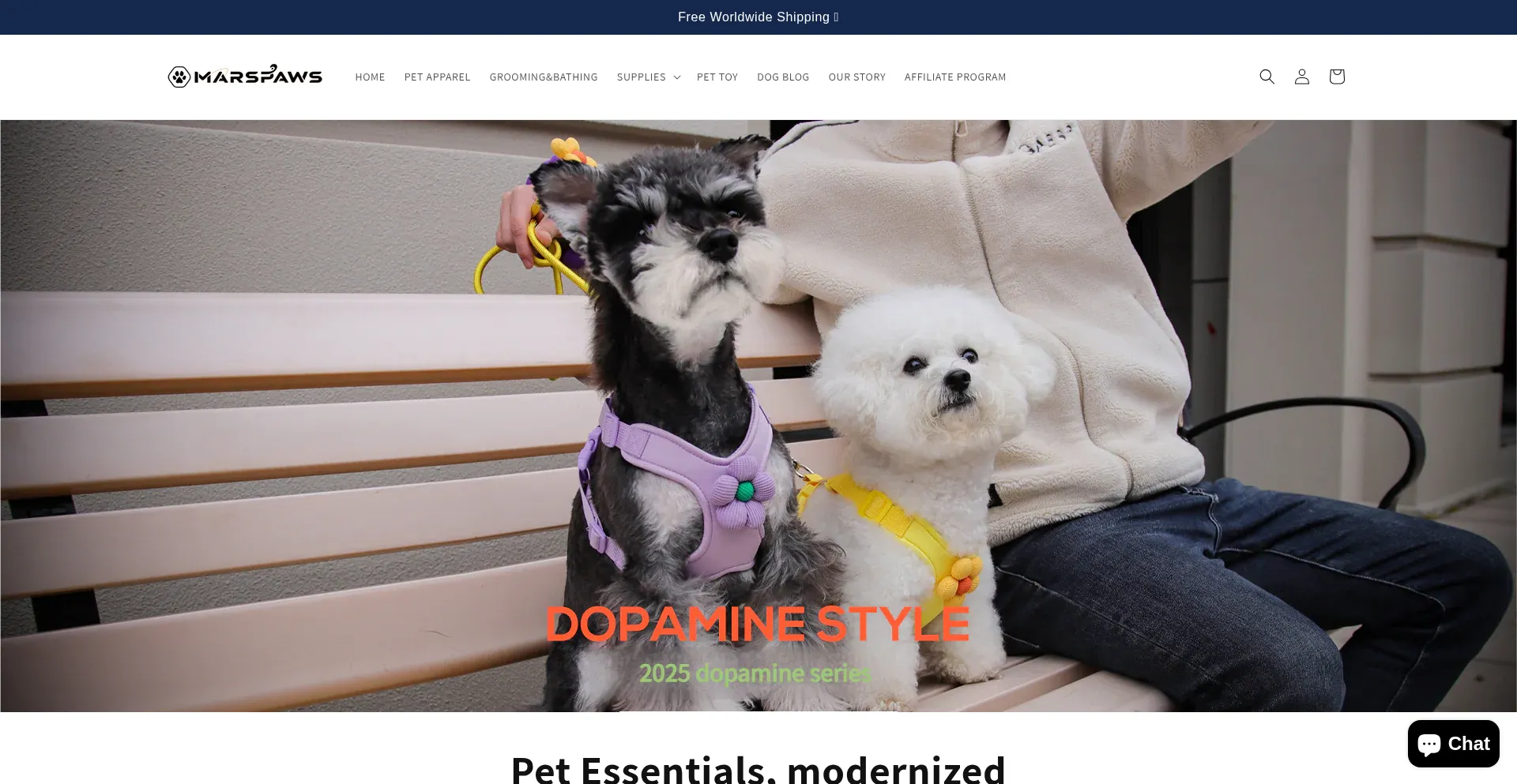 Our analyzer determines that website marspaws.com is using Shopify CMS. Shopify is a popular e-commerce platform, powering around 4.4% of websites globally.