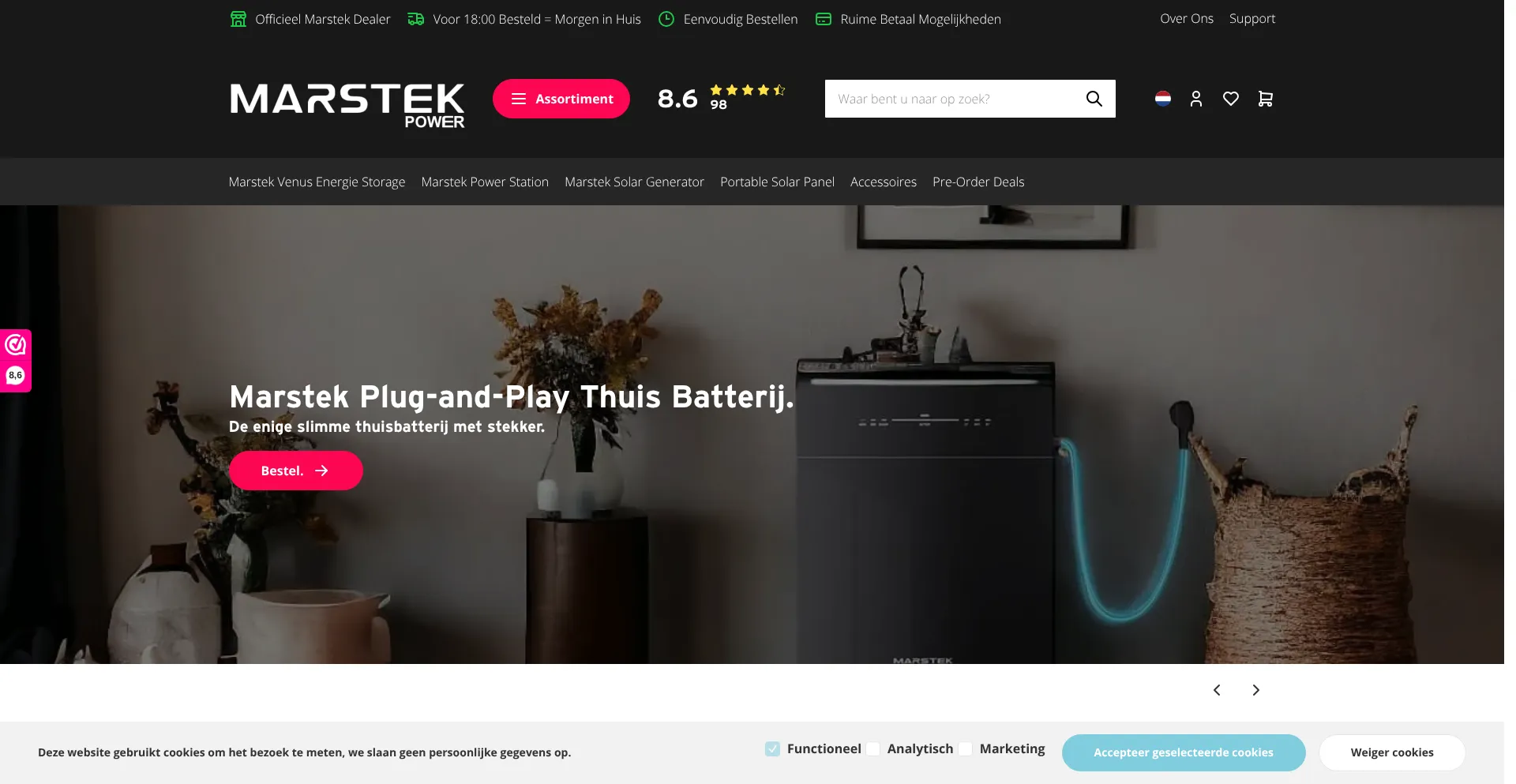 Analysis indicates that marstek-power.eu operates as an e-commerce platform facilitating online transactions for goods or services. The website implements shopping cart functionality, payment processing systems, and product catalog features typical of commercial retail operations.