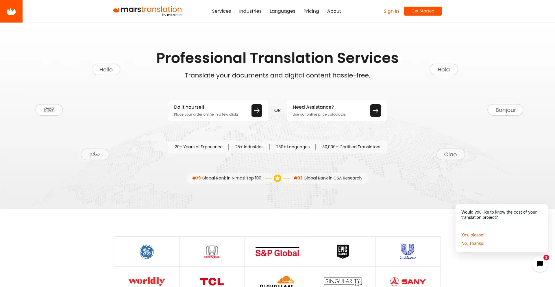 Top-rated translation company for websites, documents, games, and more. Get accurate and professional translation services in 230+ languages worldwide.