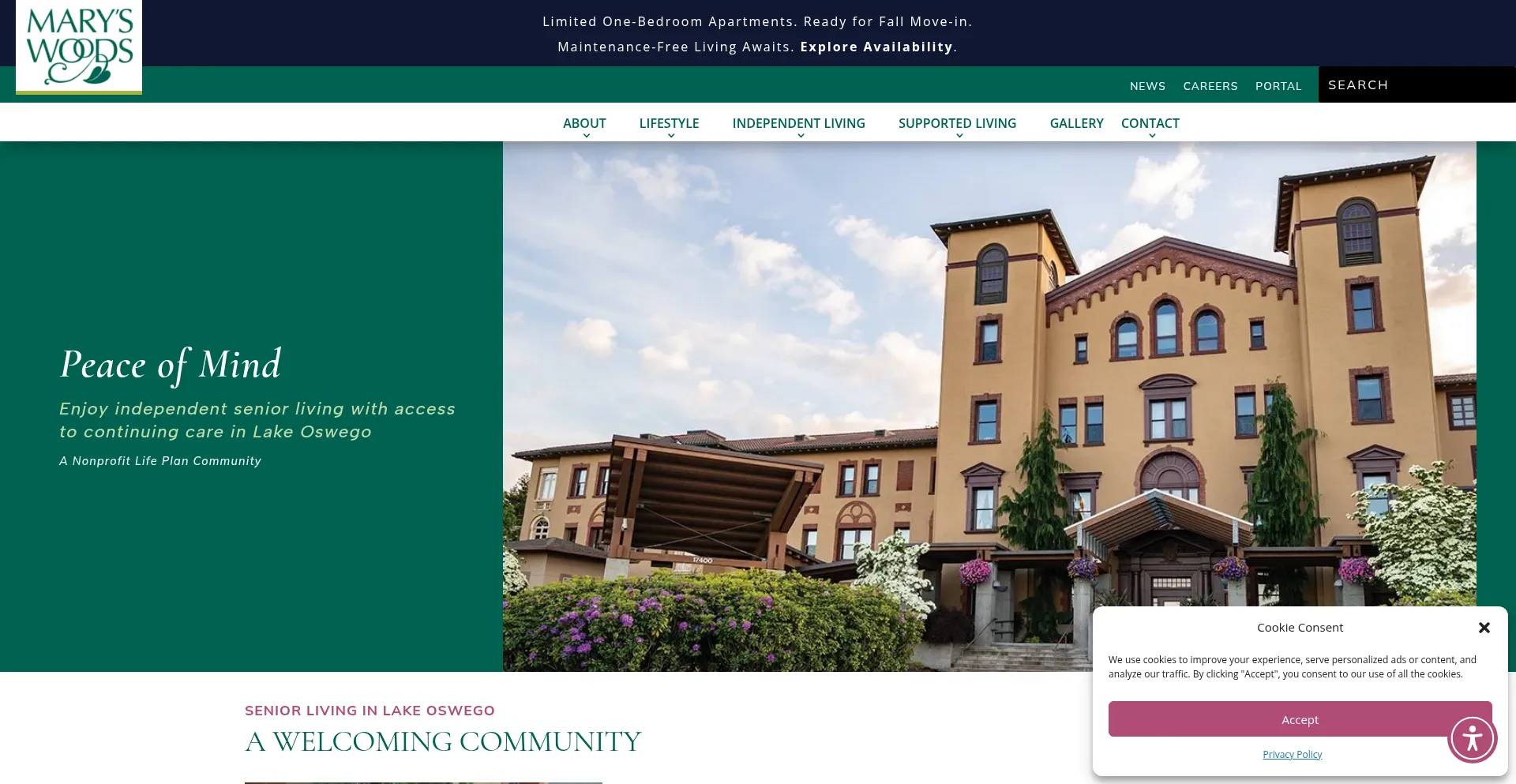 The website implements cookie consent mechanisms in compliance with privacy regulations such as GDPR or CCPA. This demonstrates that maryswoods.org adheres to data protection standards and provides users with control over personal data collection practices.
